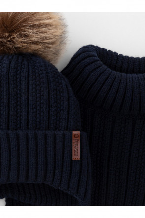 Комплект для мальчика: шапка и манишка из полушерстяной пряжи. Шапка на завязках с синтепоновым утеплителем. Подклад из натурального хлопка. Полностью закрывает голову, уши и шею, защищая ребёнка от холодного воздуха и ветра. На макушке помпон. Манишка с высоким воротником с эластичным отворотом.