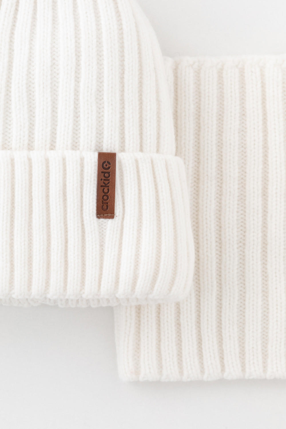 Комплект зимний детский: шапка и снуд из полушерсти. Тёплая вязаная шапка с отворотом на подкладе из флиса. Украшена нашивкой из искусственной кожи. Узкий снуд без оборотов вокруг шеи. Изделие сохраняет форму и стойкий цвет после многочисленных стирок.