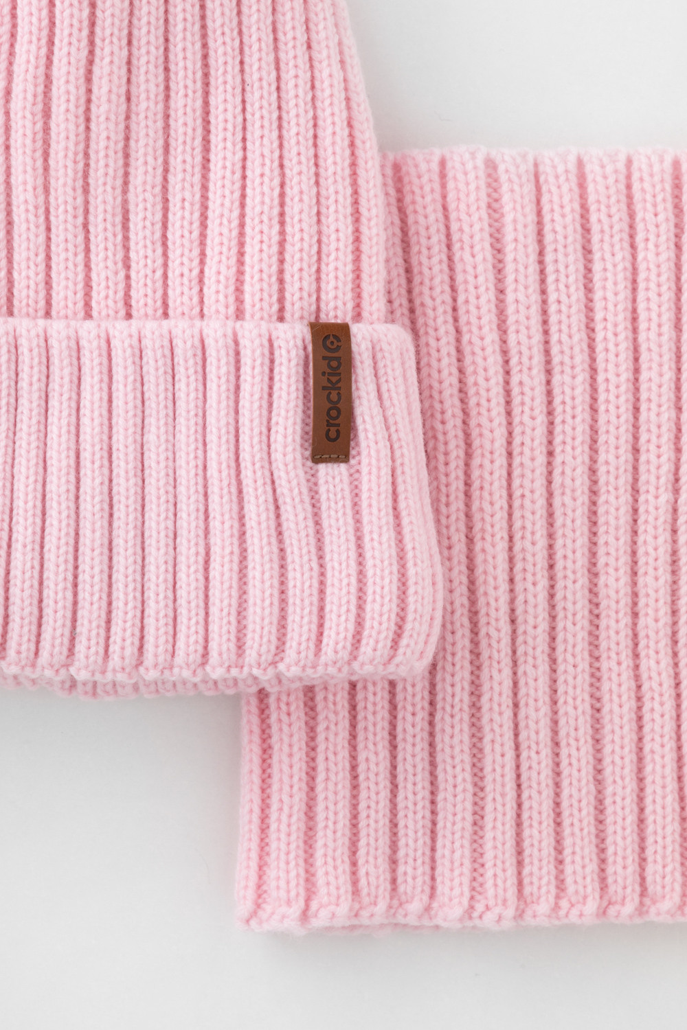 Комплект зимний детский: шапка и снуд из полушерсти. Тёплая вязаная шапка с отворотом на подкладе из флиса. Украшена нашивкой из искусственной кожи. Узкий снуд без оборотов вокруг шеи. Изделие сохраняет форму и стойкий цвет после многочисленных стирок.