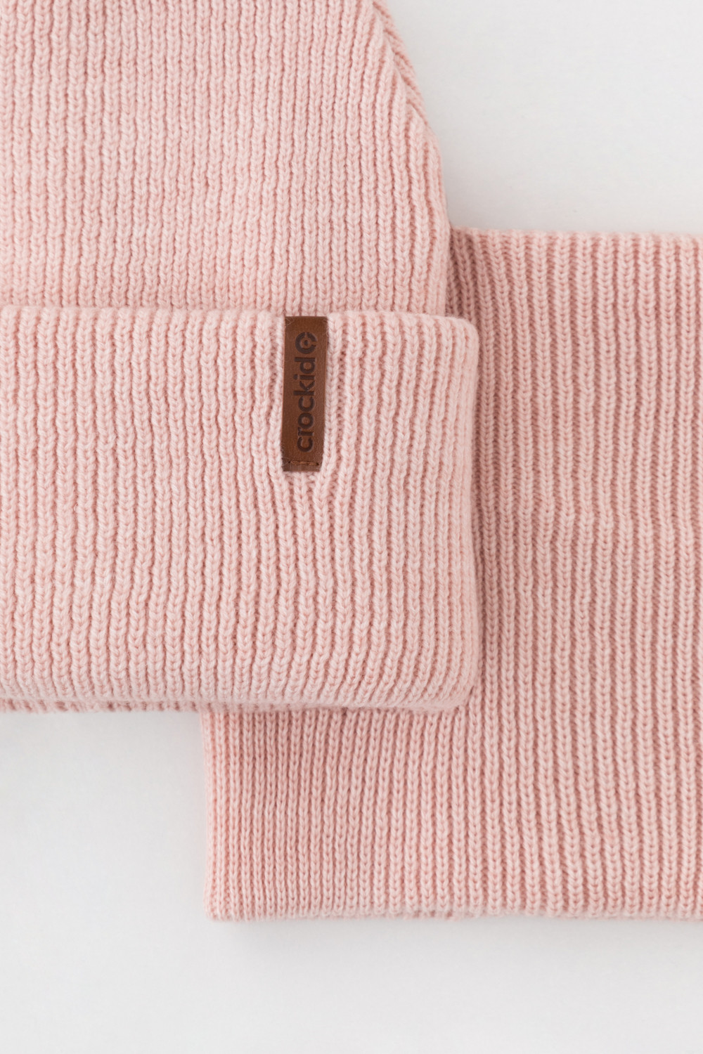 Комплект детский: шапка и снуд из полушерсти. Тёплая шапка с отворотом, украшена нашивкой из искусственной кожи. Снуд без оборотов вокруг шеи. Изделие сохраняет форму и стойкий цвет после многочисленных стирок.