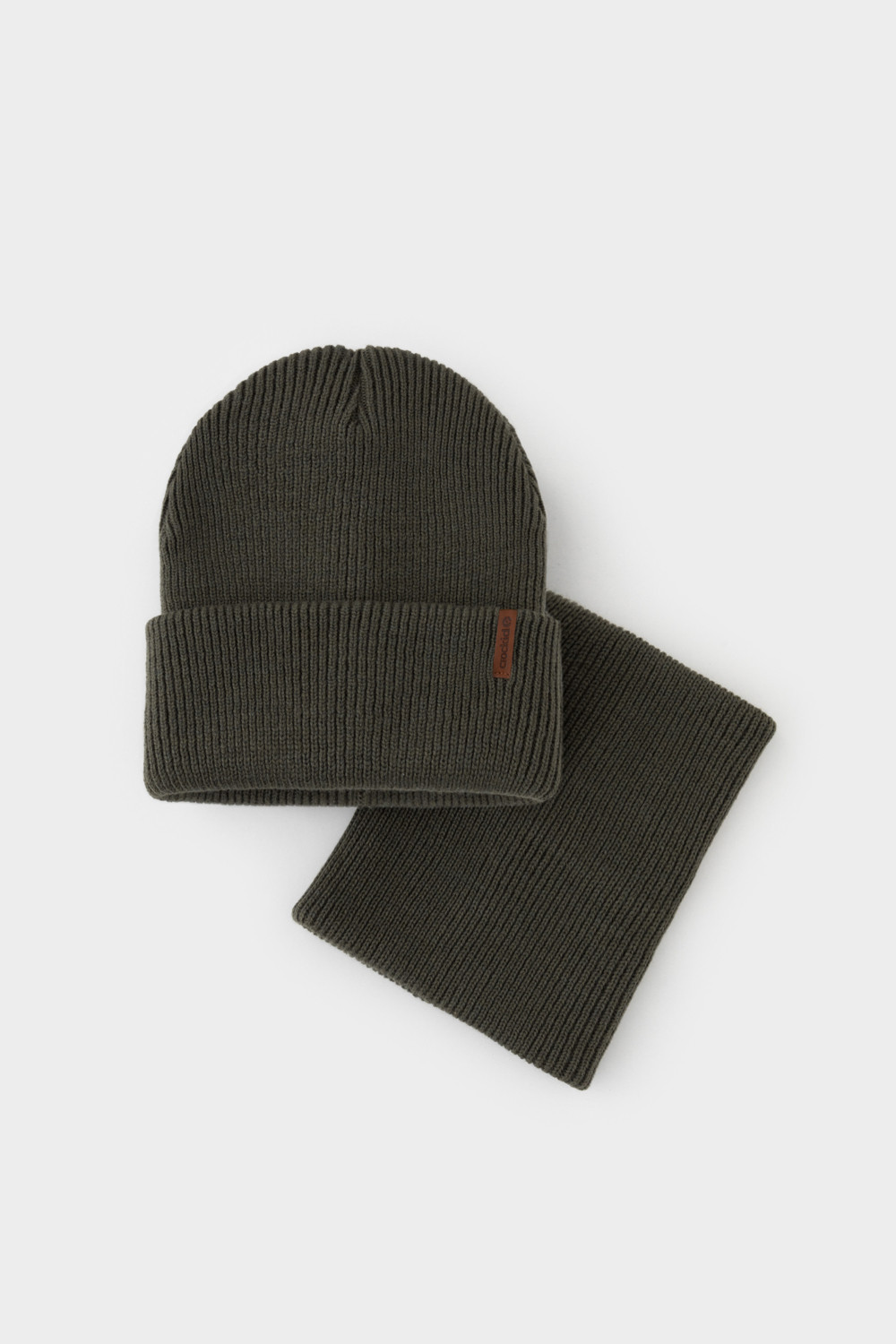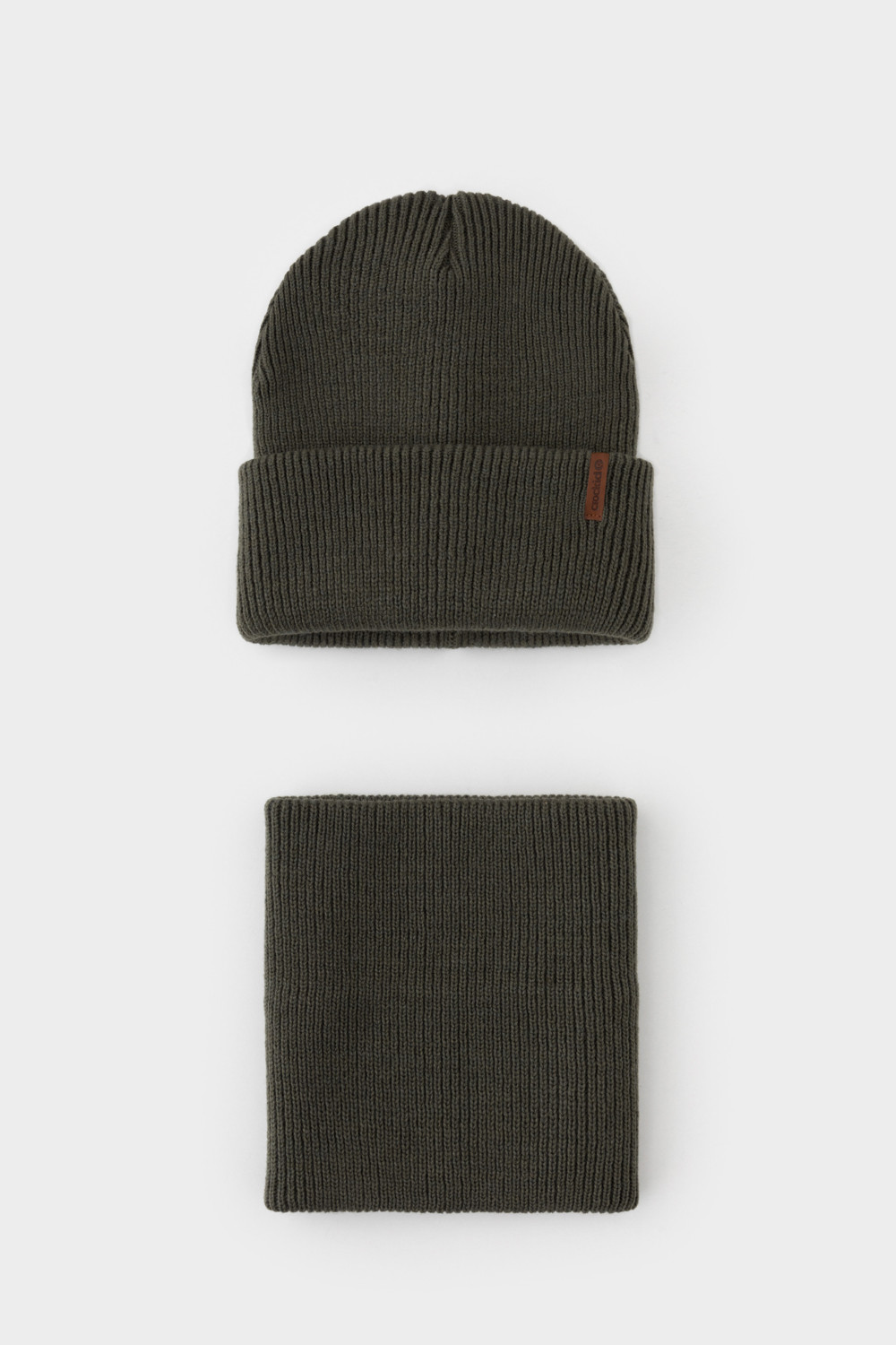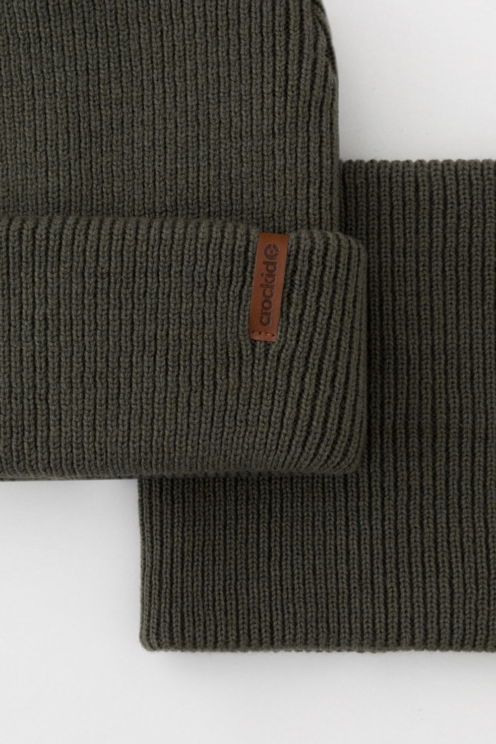 Комплект детский: шапка и снуд из полушерсти. Тёплая шапка с отворотом, украшена нашивкой из искусственной кожи. Снуд без оборотов вокруг шеи. Изделие сохраняет форму и стойкий цвет после многочисленных стирок.