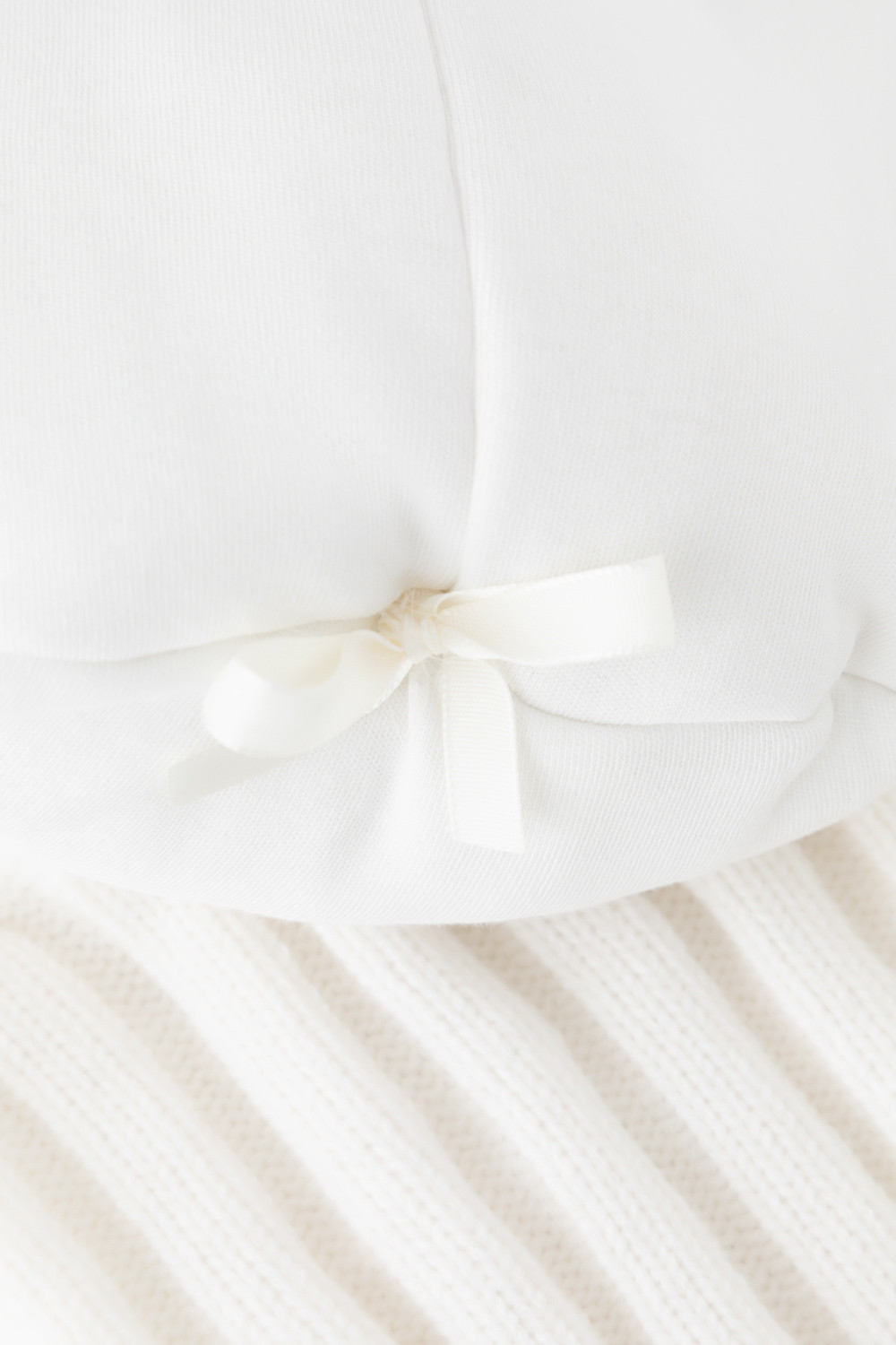 Комплект детский: шапка и снуд из полушерсти. Шапка на завязках с синтепоновым утеплителем. Подклад из натурального хлопка. Полностью закрывает голову, уши и шею, защищая ребёнка от холодного воздуха и ветра. На макушке помпон. Снуд с отворотом. Изделие сохраняет форму и стойкий цвет после многочисленных стирок.