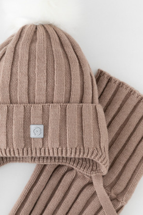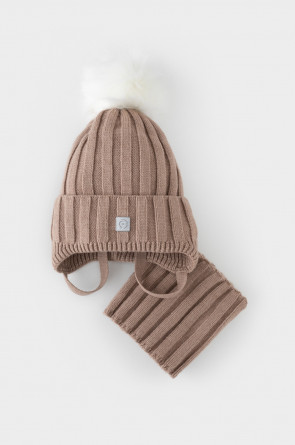 Комплект детский: шапка и снуд из полушерсти. Шапка на завязках с синтепоновым утеплителем. Подклад из натурального хлопка. Полностью закрывает голову, уши и шею, защищая ребёнка от холодного воздуха и ветра. На макушке помпон. Снуд с отворотом. Изделие сохраняет форму и стойкий цвет после многочисленных стирок.