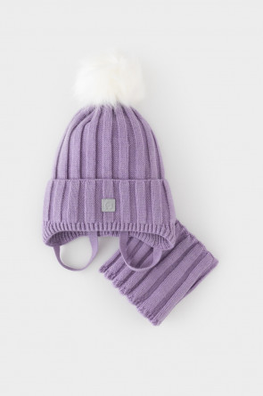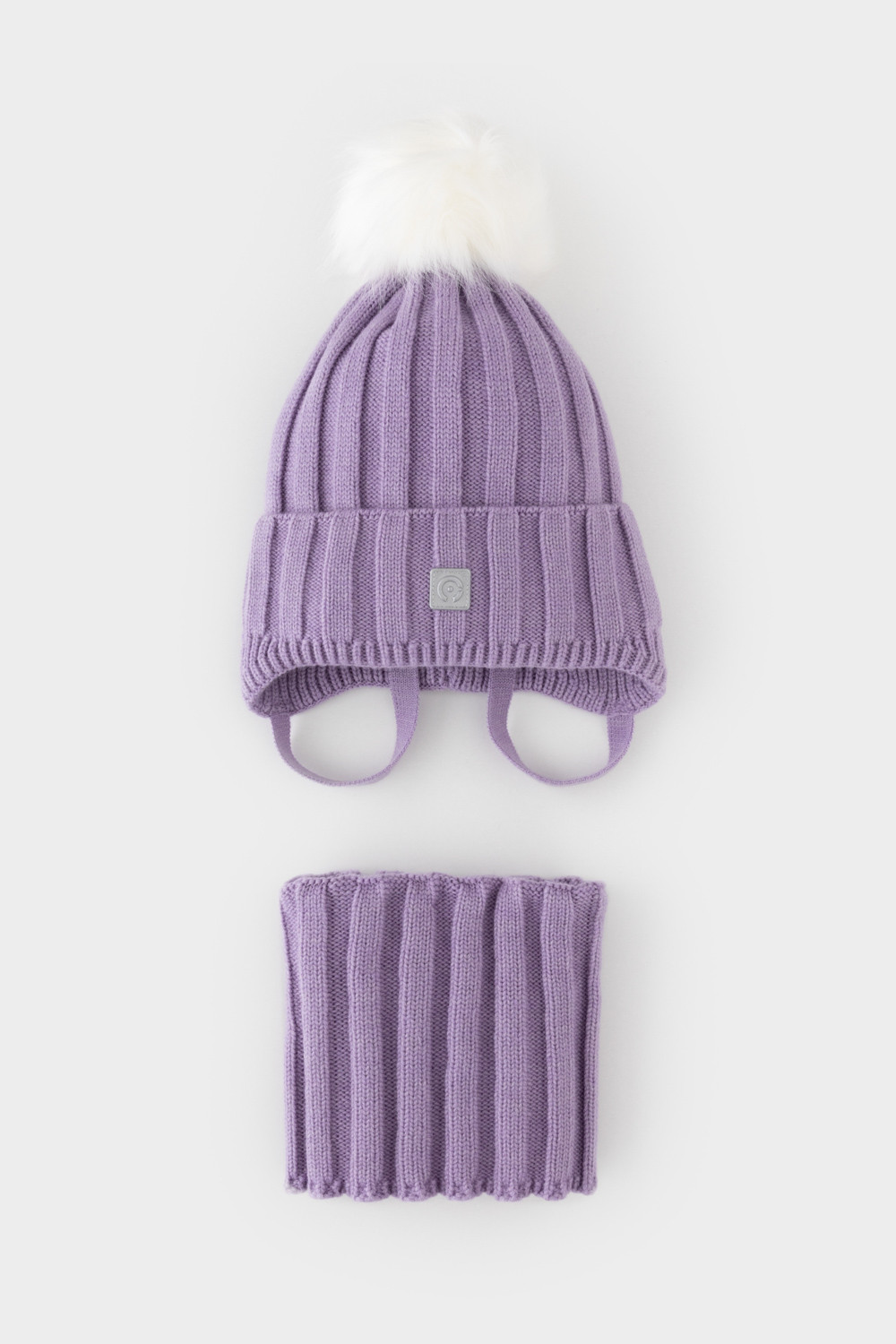 Комплект детский: шапка и снуд из полушерсти. Шапка на завязках с синтепоновым утеплителем. Подклад из натурального хлопка. Полностью закрывает голову, уши и шею, защищая ребёнка от холодного воздуха и ветра. На макушке помпон. Снуд с отворотом. Изделие сохраняет форму и стойкий цвет после многочисленных стирок.