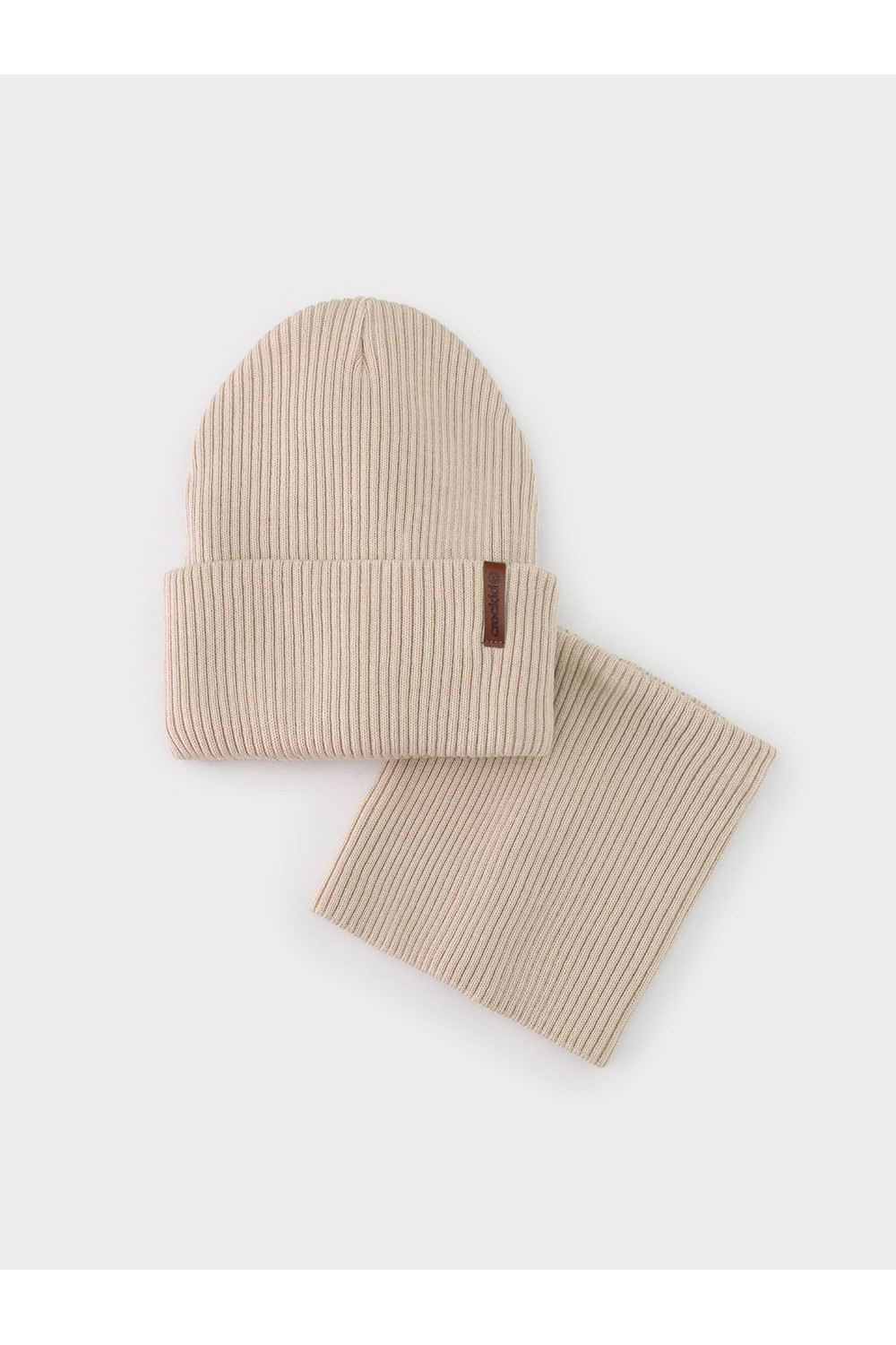 Комплект демисезонный из шапки с отворотом и снуда. Связан из высококачественного хлопка и выполнен переплетением ластик. Комфортно прилегает, обеспечивая защиту от холода и хороший теплообмен. Изделия хорошо переносят многократные стирки, сохраняя цвет и форму.