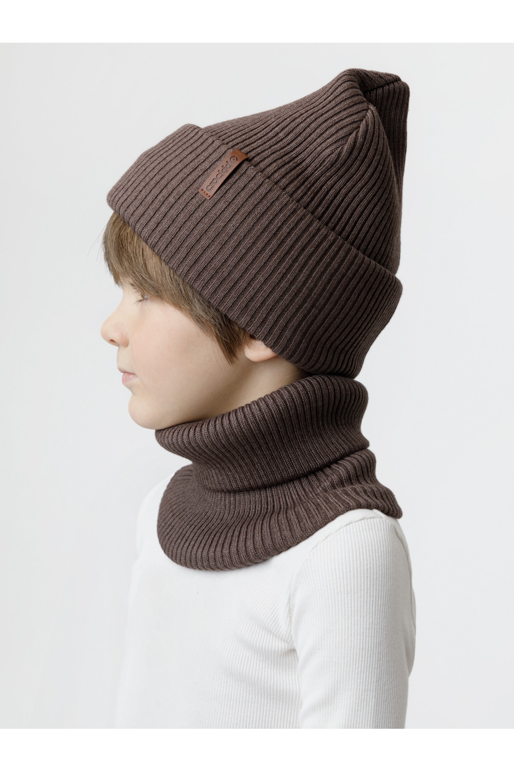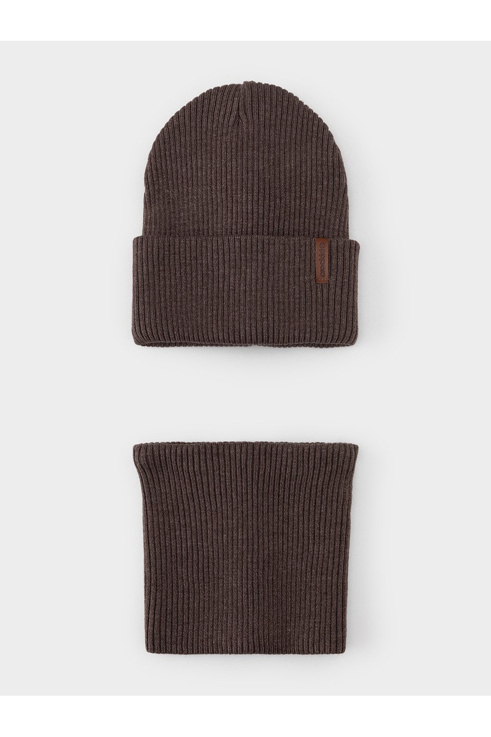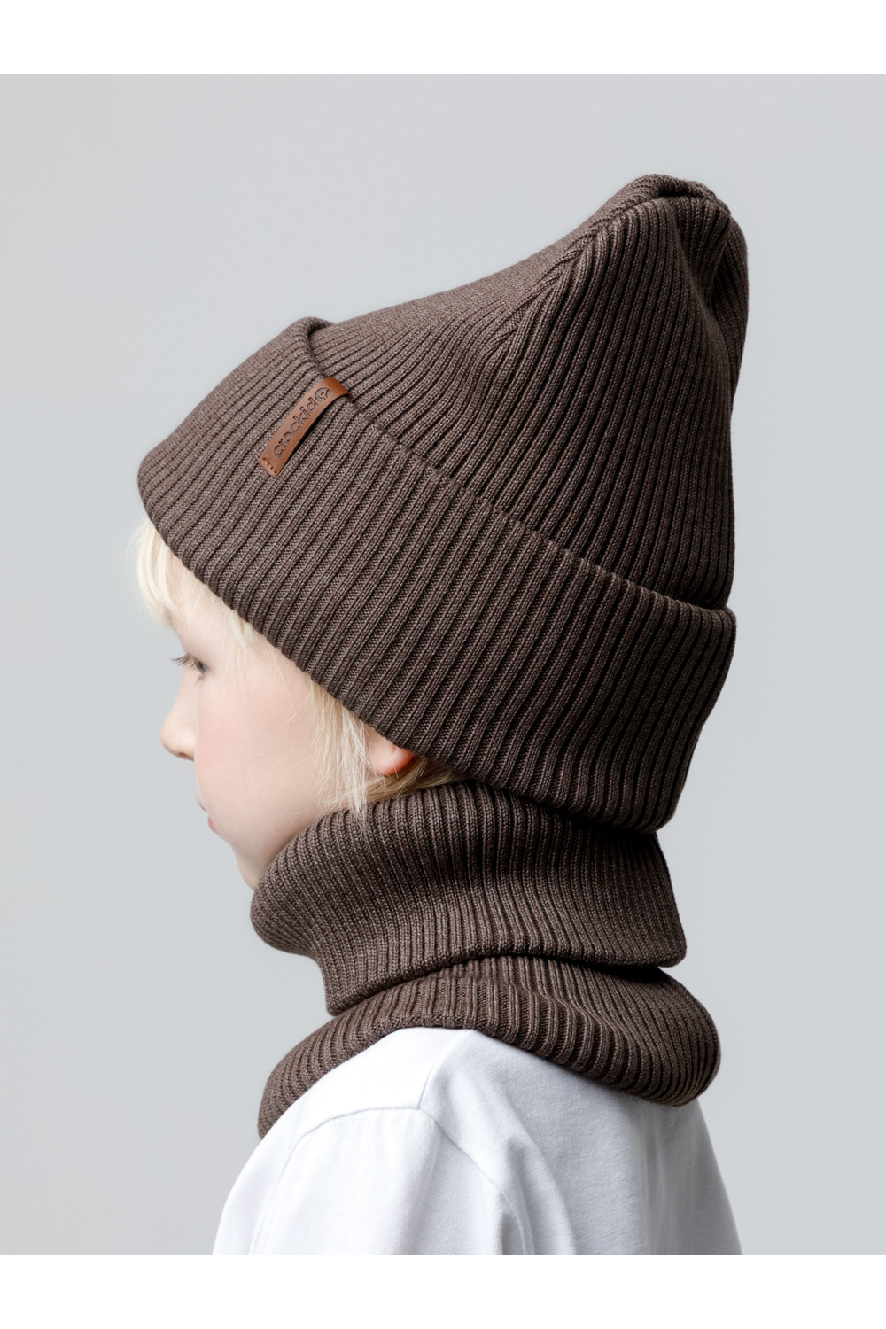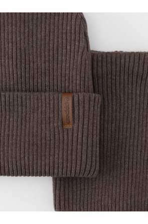 Комплект демисезонный из шапки с отворотом и снуда. Связан из высококачественного хлопка и выполнен переплетением ластик. Комфортно прилегает, обеспечивая защиту от холода и хороший теплообмен. Изделия хорошо переносят многократные стирки, сохраняя цвет и форму.