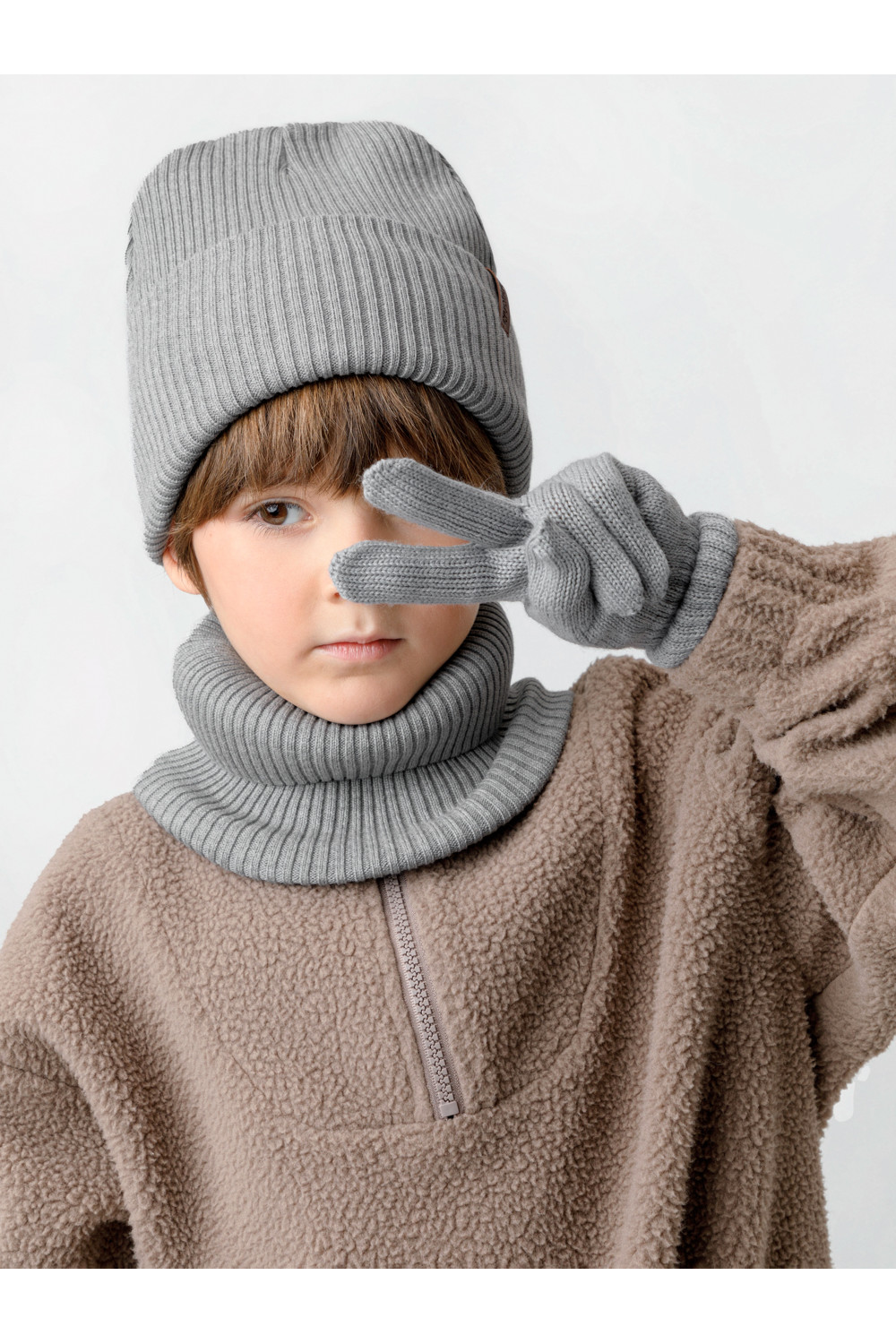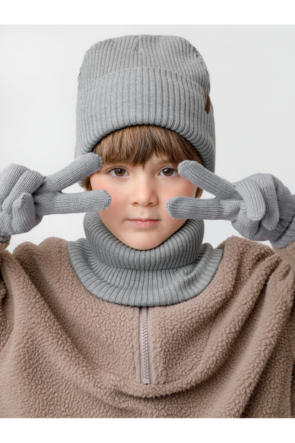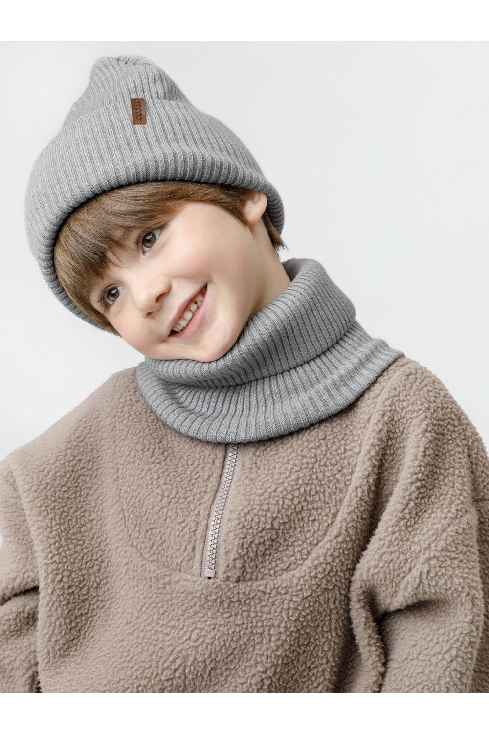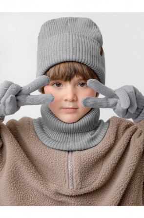 Комплект демисезонный из шапки с отворотом и снуда. Связан из высококачественного хлопка и выполнен переплетением ластик. Комфортно прилегает, обеспечивая защиту от холода и хороший теплообмен. Изделия хорошо переносят многократные стирки, сохраняя цвет и форму.