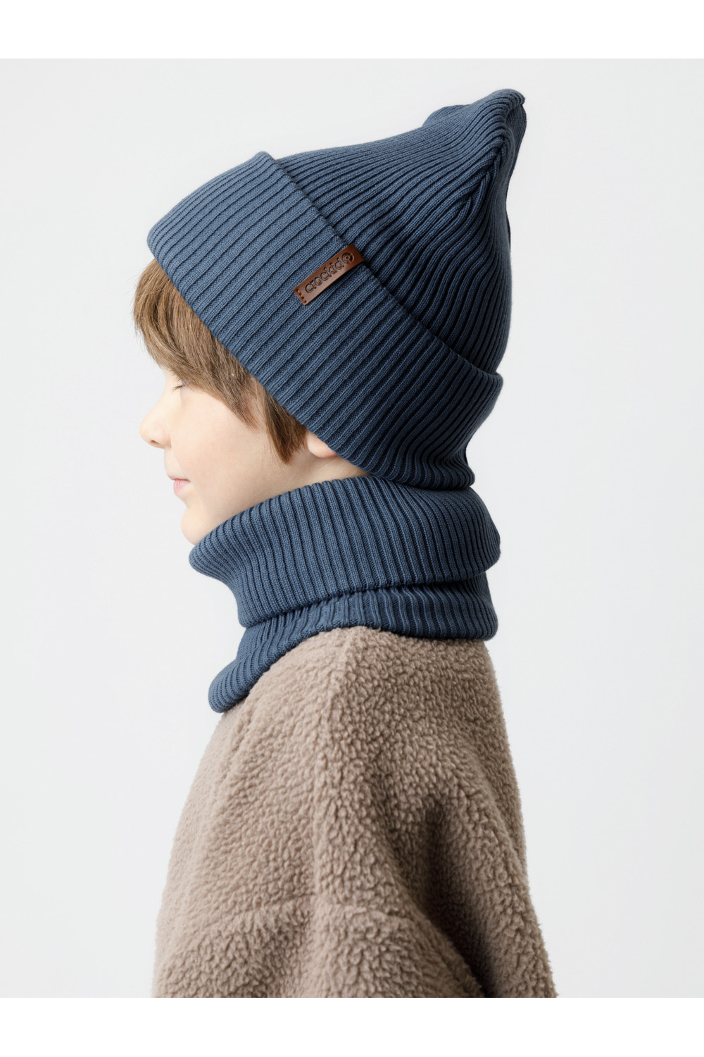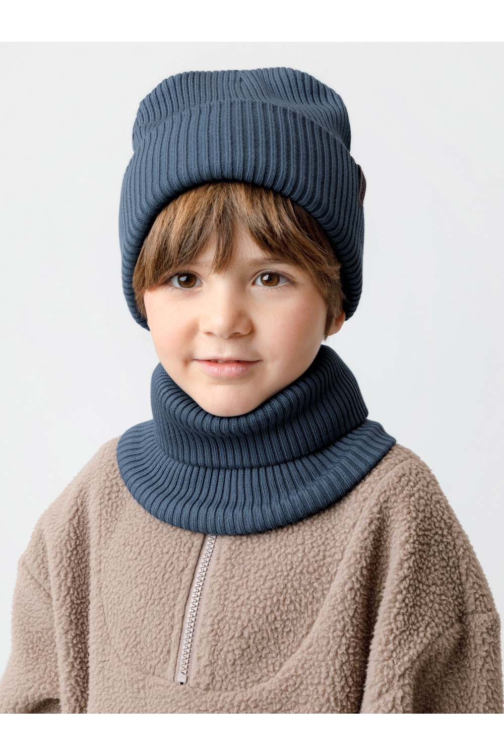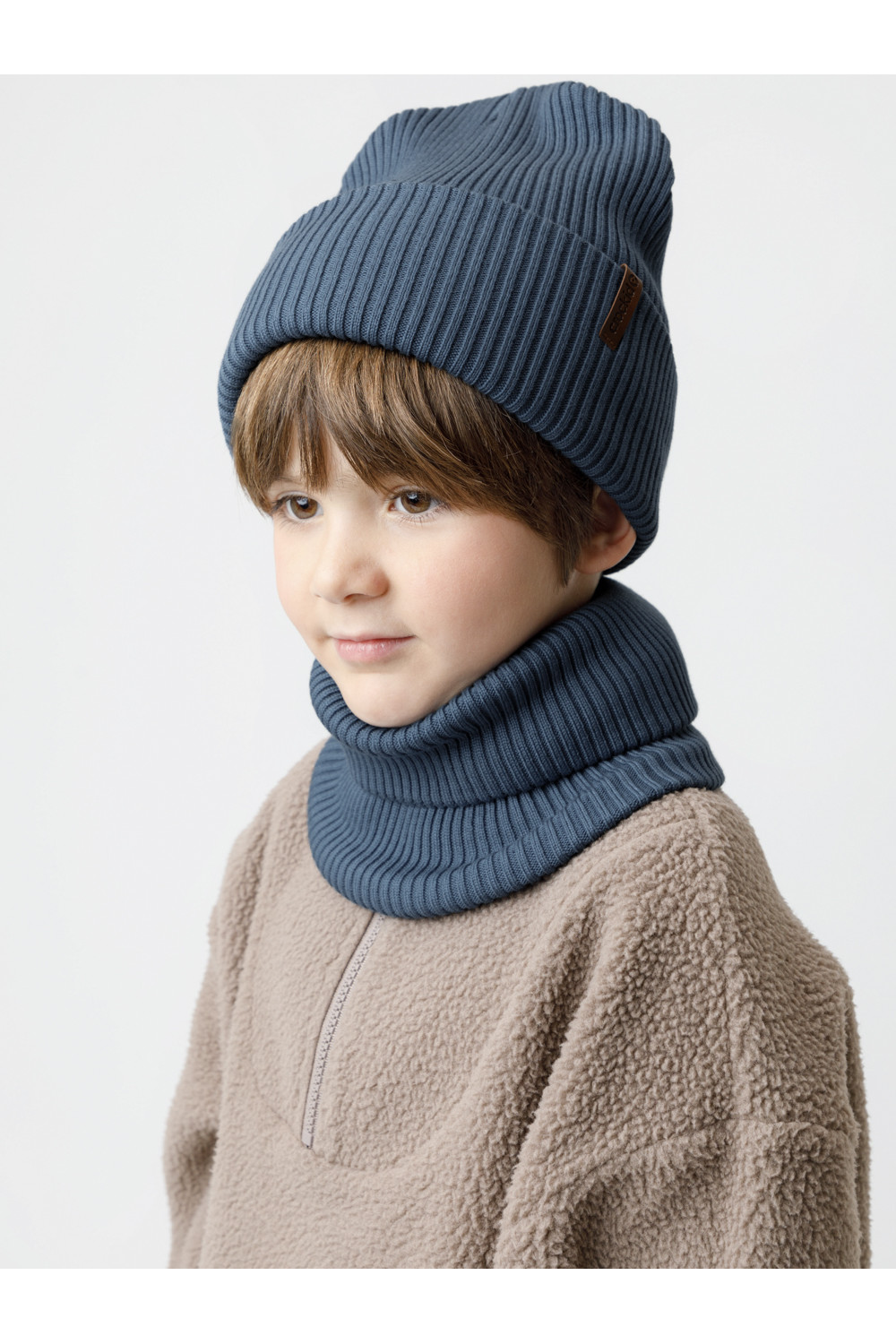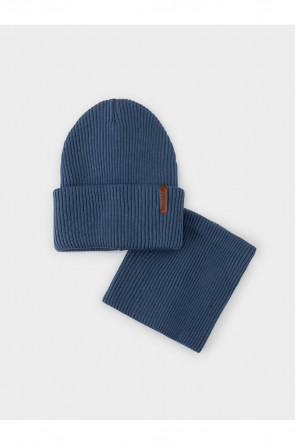 Комплект демисезонный из шапки с отворотом и снуда. Связан из высококачественного хлопка и выполнен переплетением ластик. Комфортно прилегает, обеспечивая защиту от холода и хороший теплообмен. Изделия хорошо переносят многократные стирки, сохраняя цвет и форму.