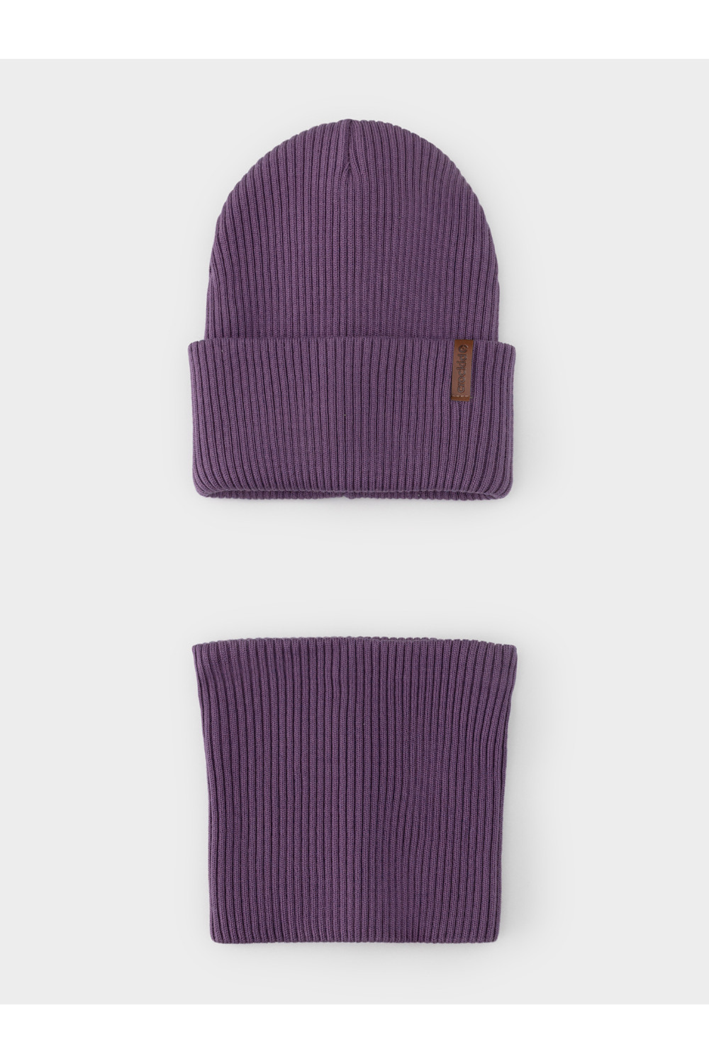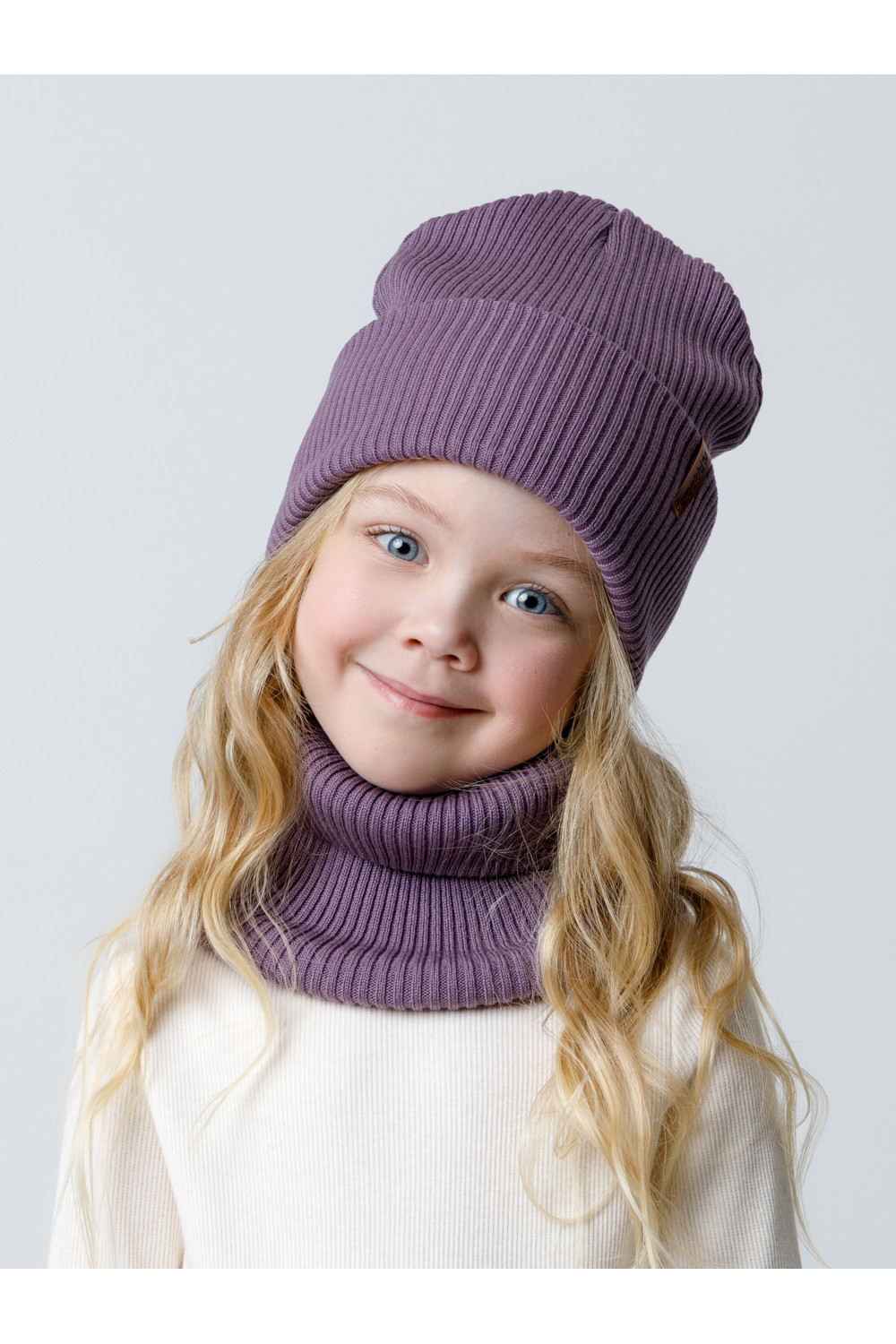Комплект демисезонный из шапки с отворотом и снуда. Связан из высококачественного хлопка и выполнен переплетением ластик. Комфортно прилегает, обеспечивая защиту от холода и хороший теплообмен. Изделия хорошо переносят многократные стирки, сохраняя цвет и форму.