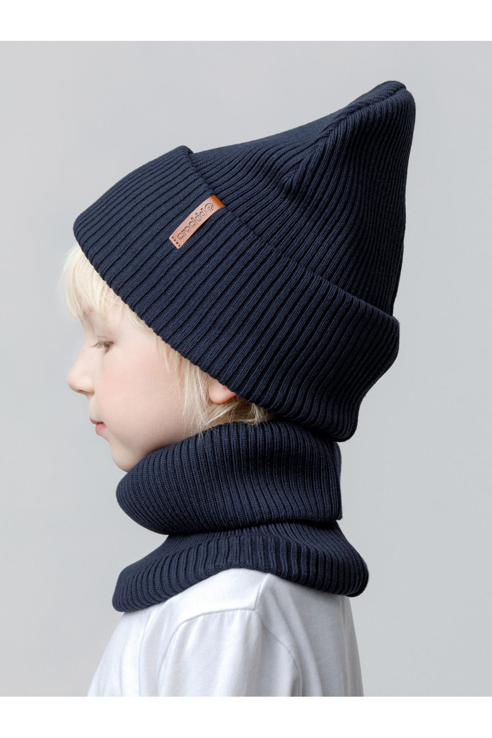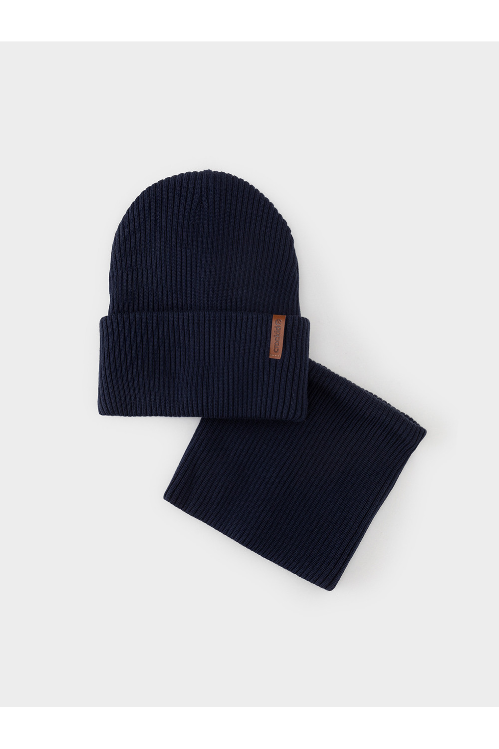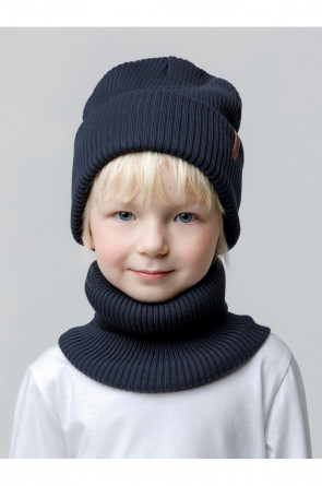 Комплект демисезонный из шапки с отворотом и снуда. Связан из высококачественного хлопка и выполнен переплетением ластик. Комфортно прилегает, обеспечивая защиту от холода и хороший теплообмен. Изделия хорошо переносят многократные стирки, сохраняя цвет и форму.