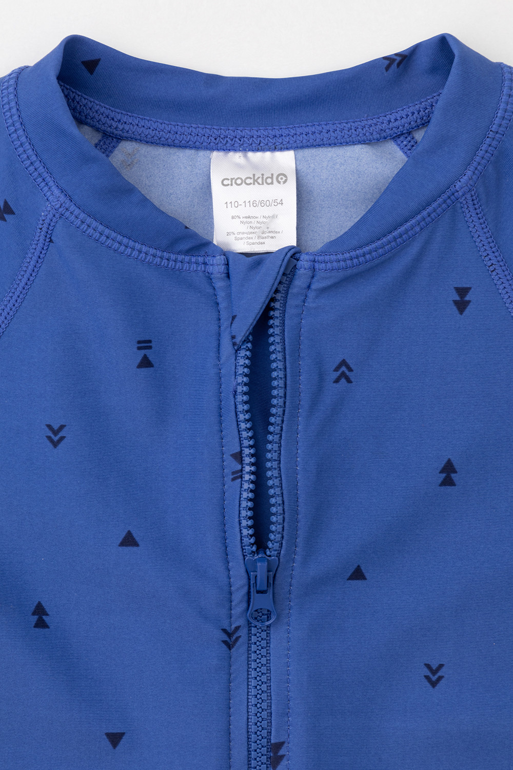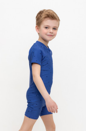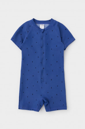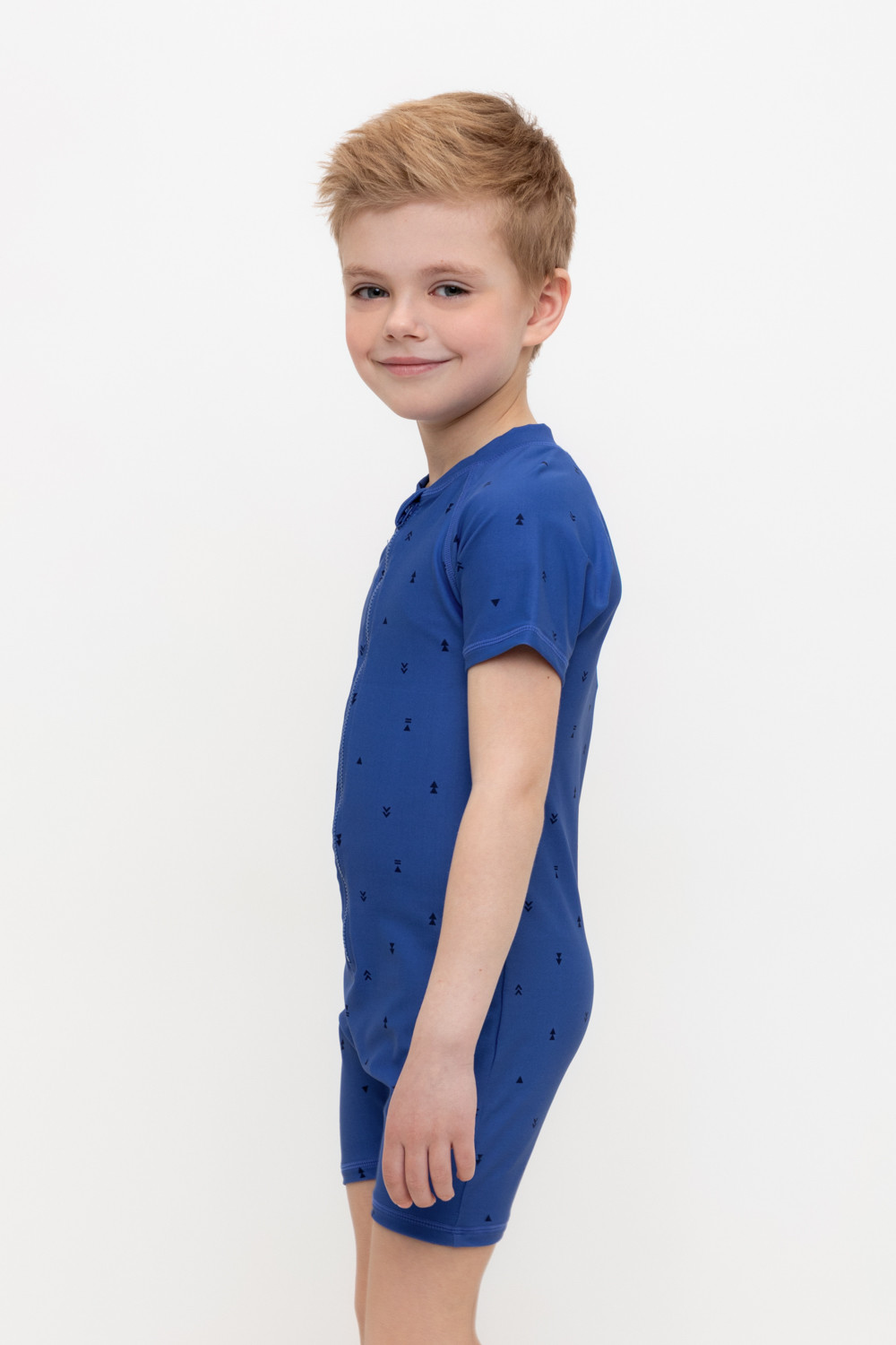 Купальник для мальчика. Застегивается спереди на замок. На замке предусмотрена защита для подбородка. На груди и спинке принт. Оригинальный принт выполнен из стойких гипоаллергенных красителей.