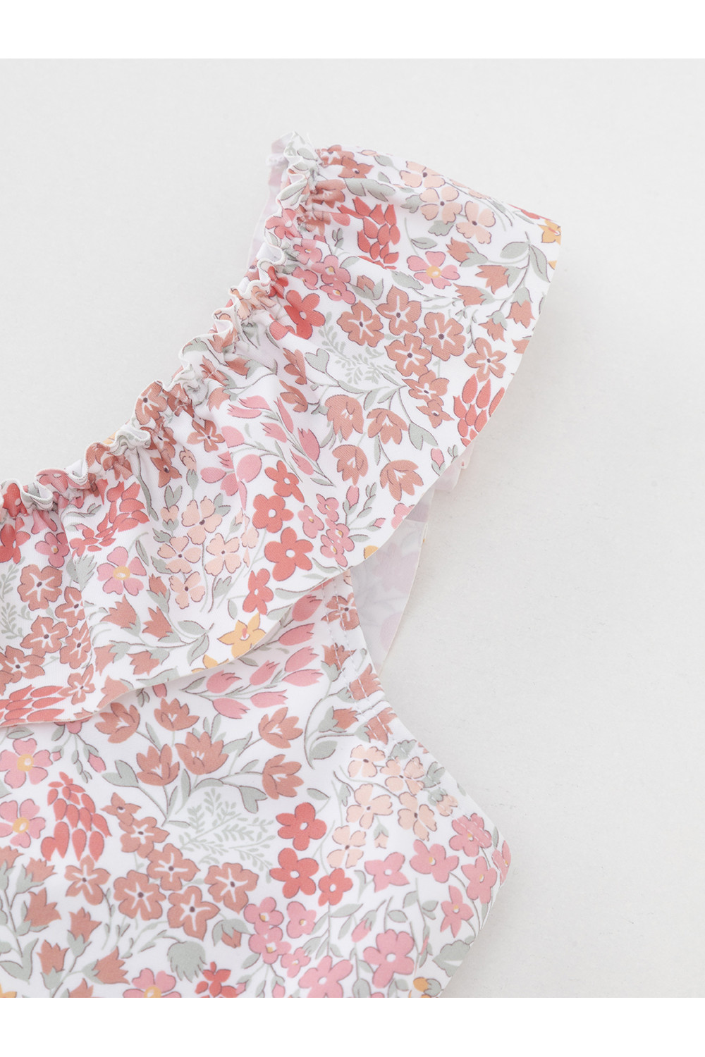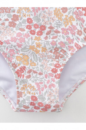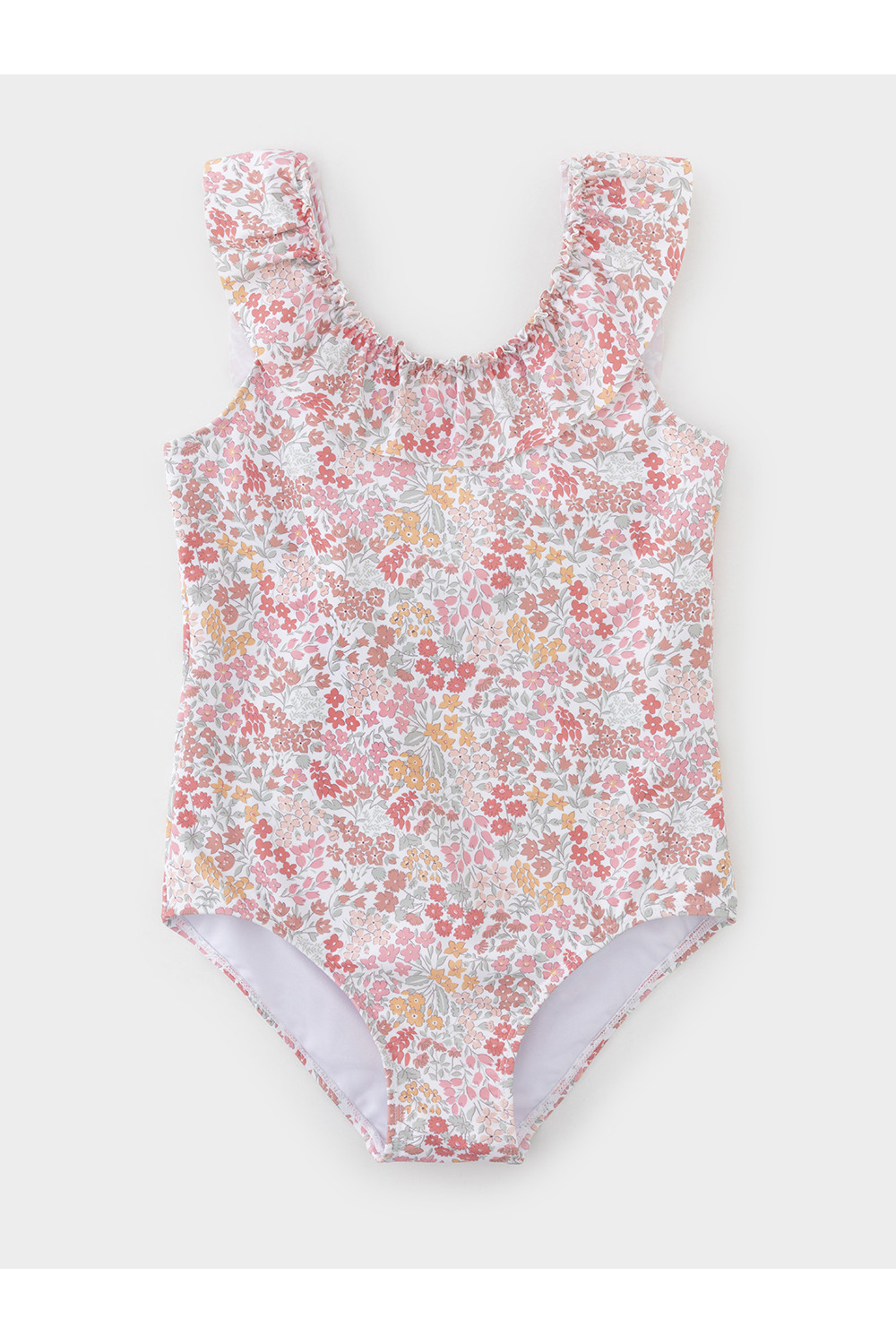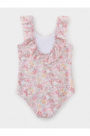 Слитный купальник на лямках для девочки. Украшен оборками. Внутри подклад. Оригинальная набивка выполнена из стойких гипоаллергенных красителей.