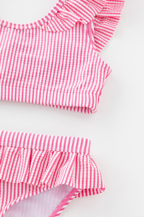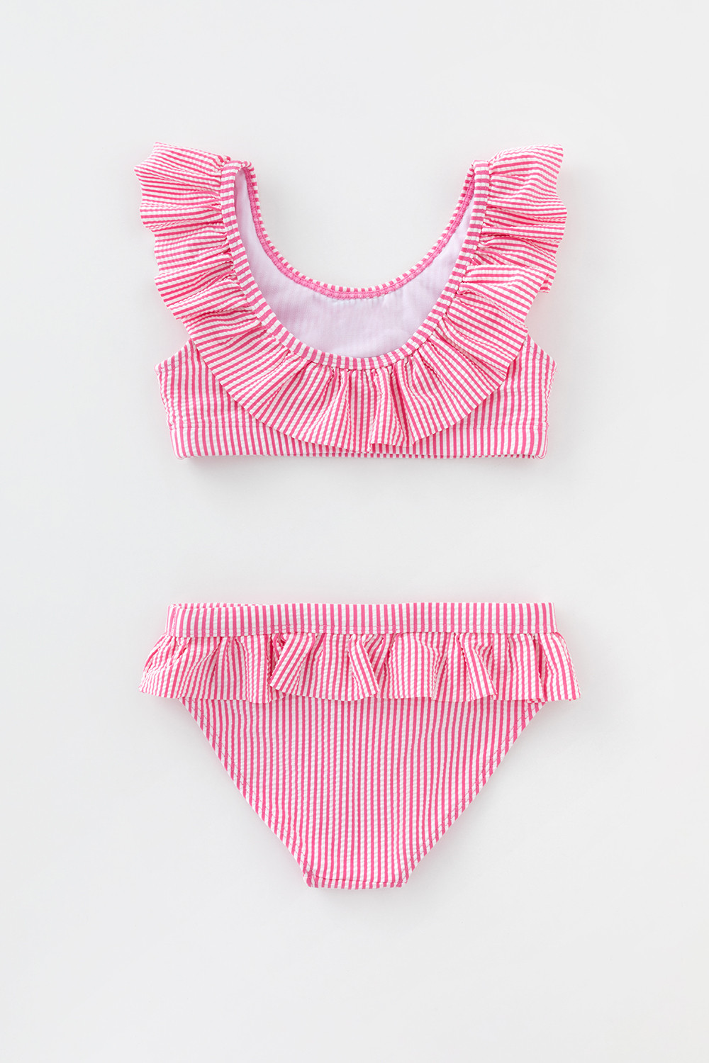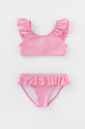 Раздельный купальник для девочки. Топ с воздушными оборками на эластичных бретелях и плавки на резинке с оборками. Оригинальная набивка выполнена из стойких гипоаллергенных красителей.