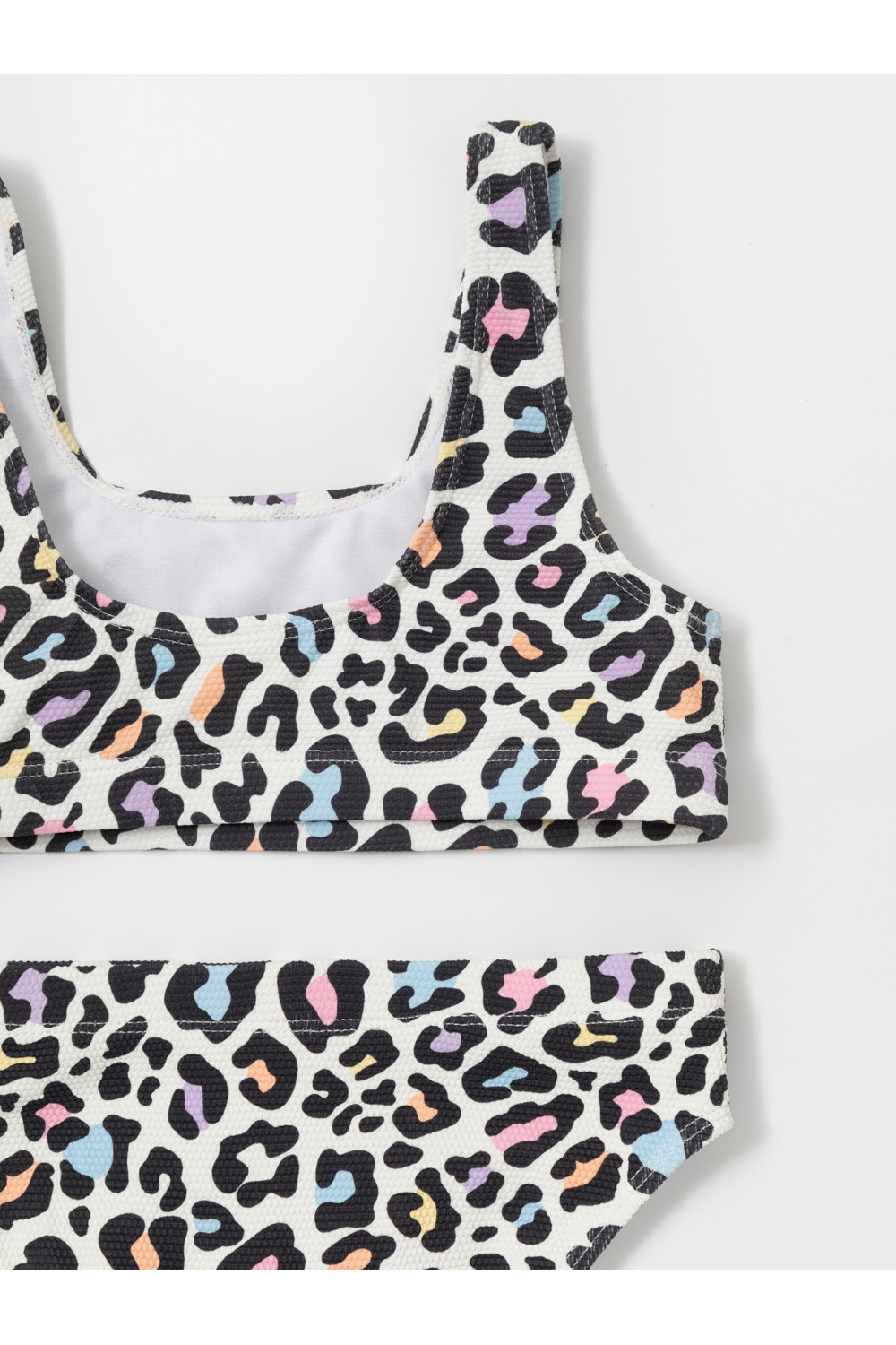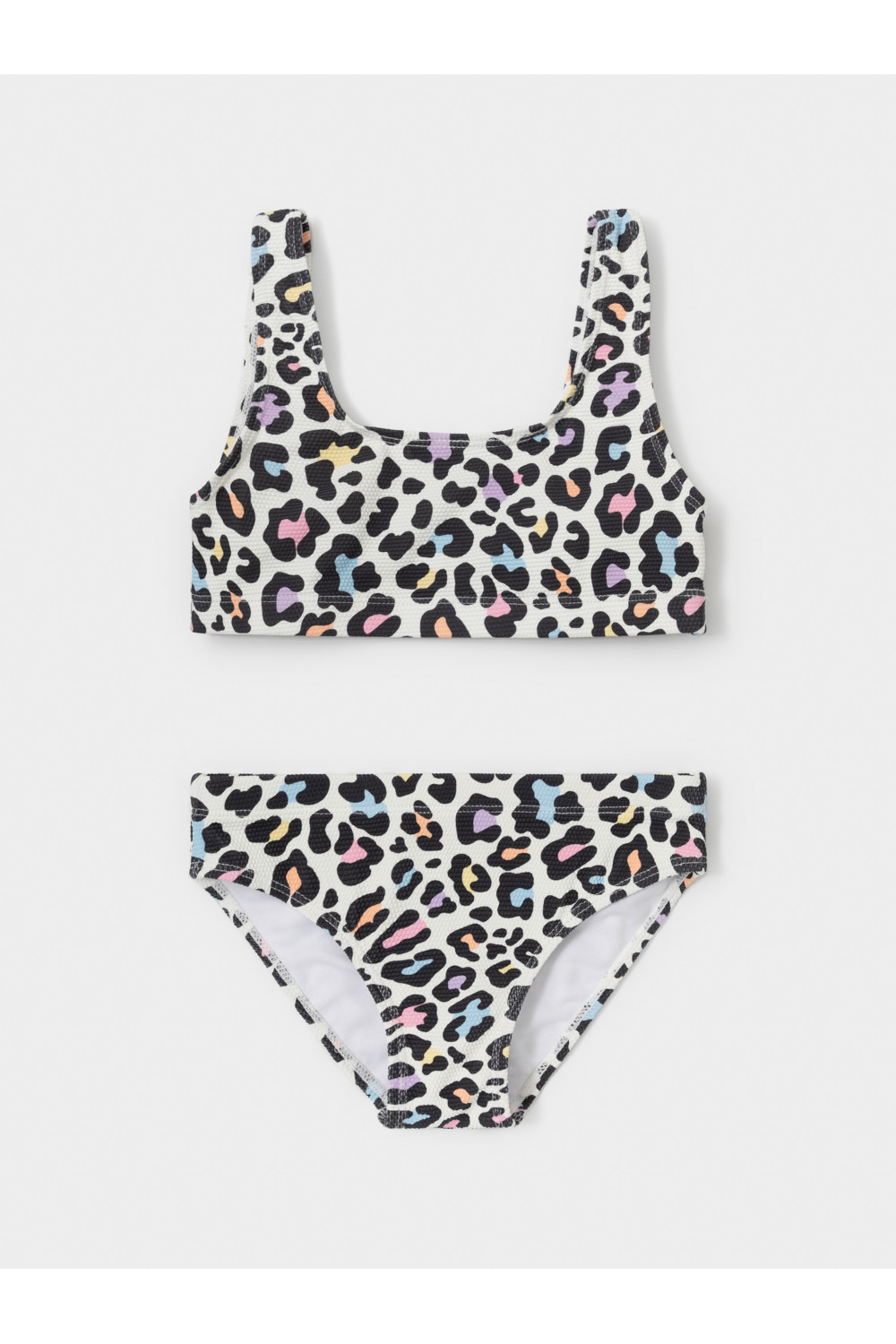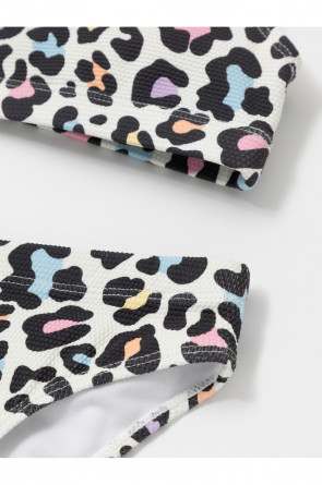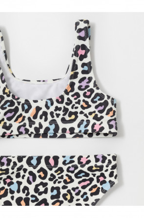 Раздельный купальник из жатого материала для девочки. Топ на эластичных лямках и плавки на резинке. Внутри подклад. Оригинальная набивка выполнена из стойких гипоаллергенных красителей.