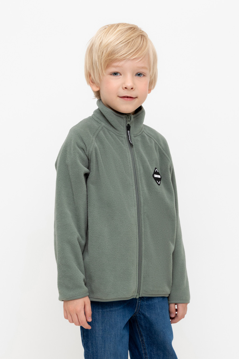 Флисовая куртка для мальчика. У изделия высокий воротник, предусмотрена защита шеи и подбородка, по бокам карманы. Куртка сохраняет цвет и форму после многократных стирок.