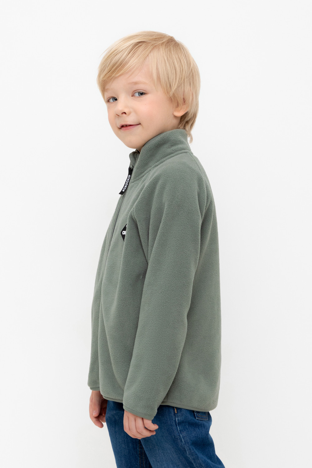 Флисовая куртка для мальчика. У изделия высокий воротник, предусмотрена защита шеи и подбородка, по бокам карманы. Куртка сохраняет цвет и форму после многократных стирок.