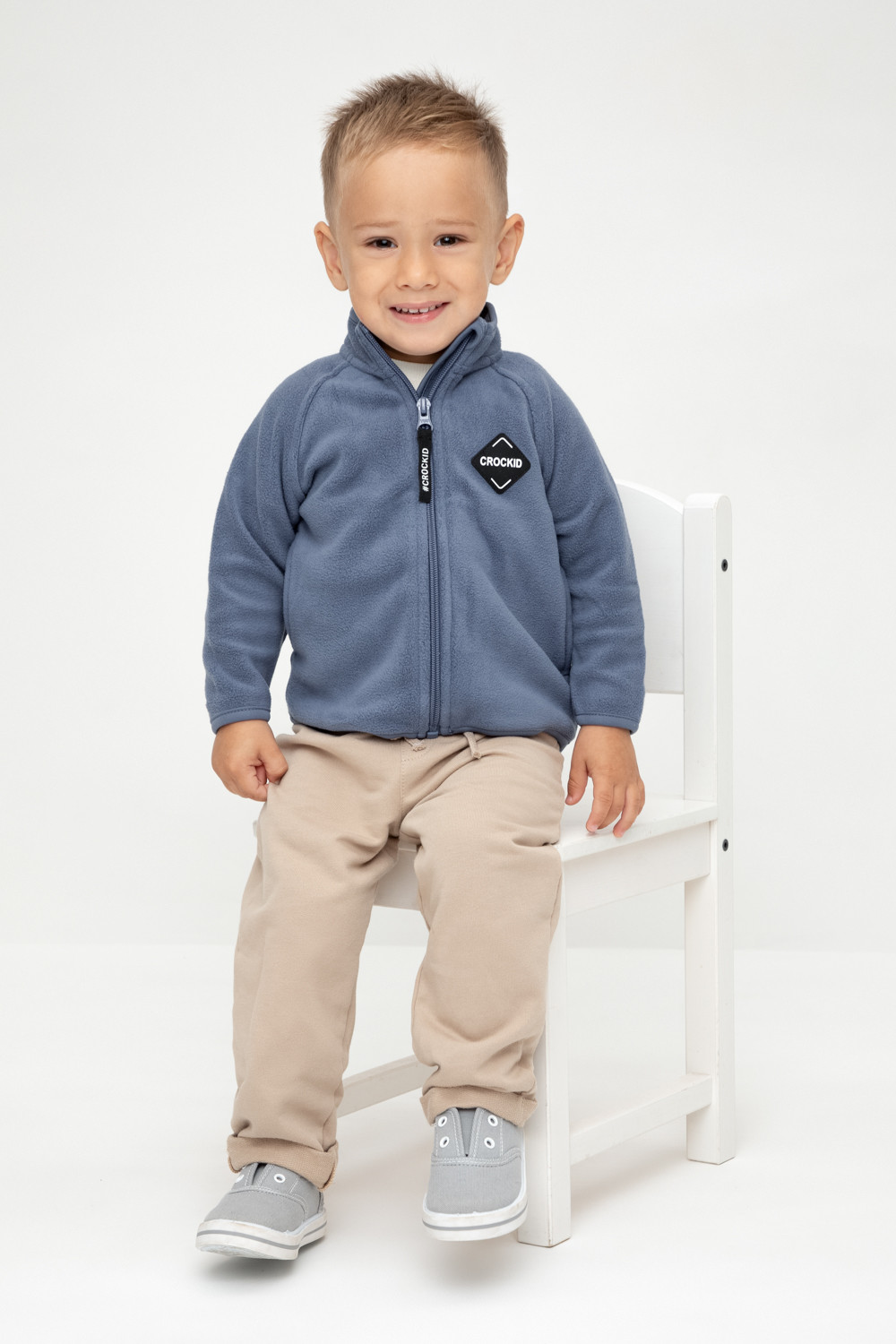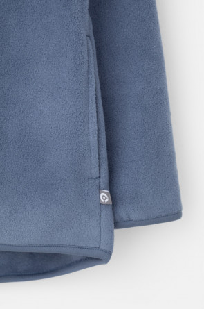 Флисовая куртка для мальчика. У изделия высокий воротник, предусмотрена защита шеи и подбородка, по бокам карманы. Куртка сохраняет цвет и форму после многократных стирок.