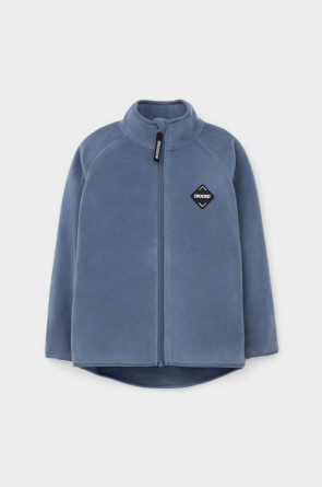 Флисовая куртка для мальчика. У изделия высокий воротник, предусмотрена защита шеи и подбородка, по бокам карманы. Куртка сохраняет цвет и форму после многократных стирок.