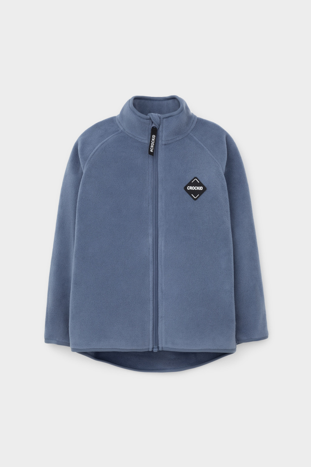 Флисовая куртка для мальчика. У изделия высокий воротник, предусмотрена защита шеи и подбородка, по бокам карманы. Куртка сохраняет цвет и форму после многократных стирок.