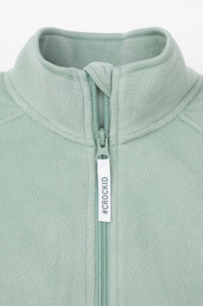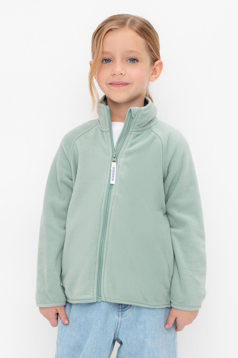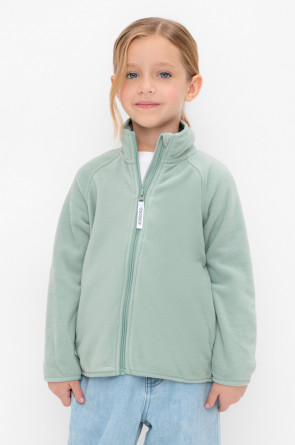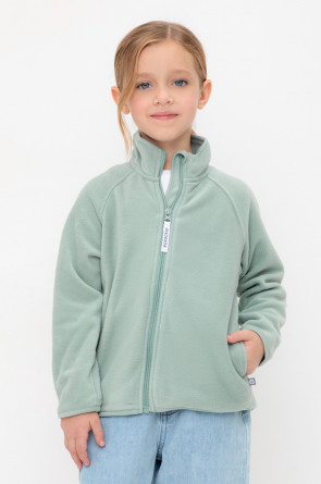 Флисовая куртка для девочки. У изделия удлинённая спинка, высокий воротник, предусмотрена защита шеи и подбородка. Рукава-реглан и низ изделия обработаны эластичным кантом для лучшего прилегания к телу, по бокам два кармана. Куртка сохраняет цвет и форму после многократных стирок.