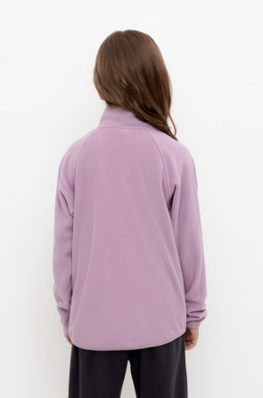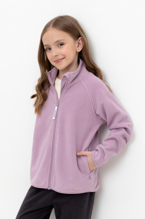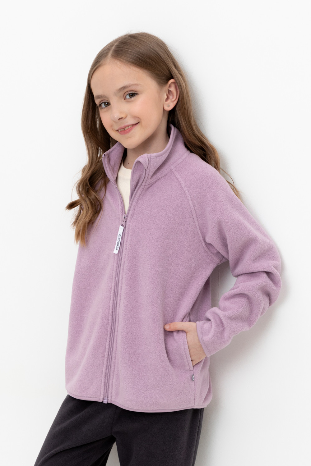 Флисовая куртка для девочки. У изделия удлинённая спинка, высокий воротник, предусмотрена защита шеи и подбородка. Рукава-реглан и низ изделия обработаны эластичным кантом для лучшего прилегания к телу, по бокам два кармана. Куртка сохраняет цвет и форму после многократных стирок.