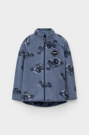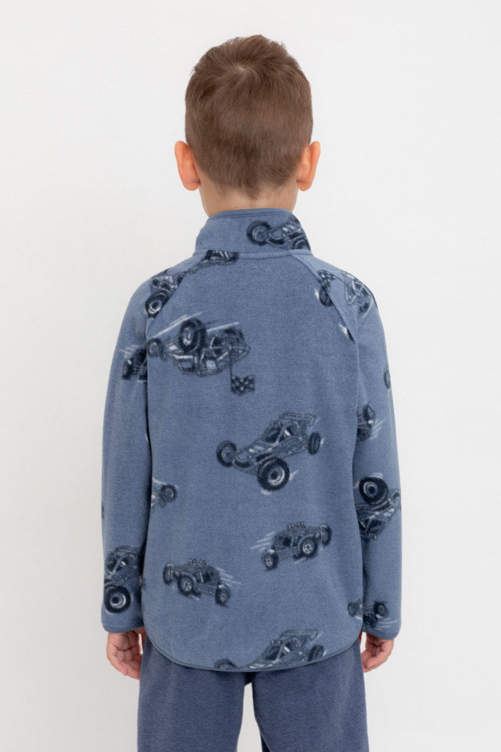 Флисовая куртка для мальчика. У изделия удлинённая спинка, высокий воротник, предусмотрена защита шеи и подбородка. Рукава-реглан и низ изделия обработаны эластичным кантом для лучшего прилегания к телу, по бокам два кармана. Оригинальная набивка выполнена из стойких, гипоаллергенных текстильных красителей. Куртка сохраняет цвет и форму после многократных стирок.
