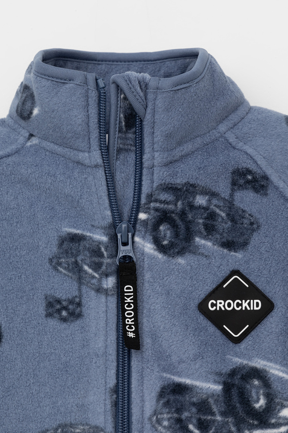 Флисовая куртка для мальчика. У изделия удлинённая спинка, высокий воротник, предусмотрена защита шеи и подбородка. Рукава-реглан и низ изделия обработаны эластичным кантом для лучшего прилегания к телу, по бокам два кармана. Оригинальная набивка выполнена из стойких, гипоаллергенных текстильных красителей. Куртка сохраняет цвет и форму после многократных стирок.