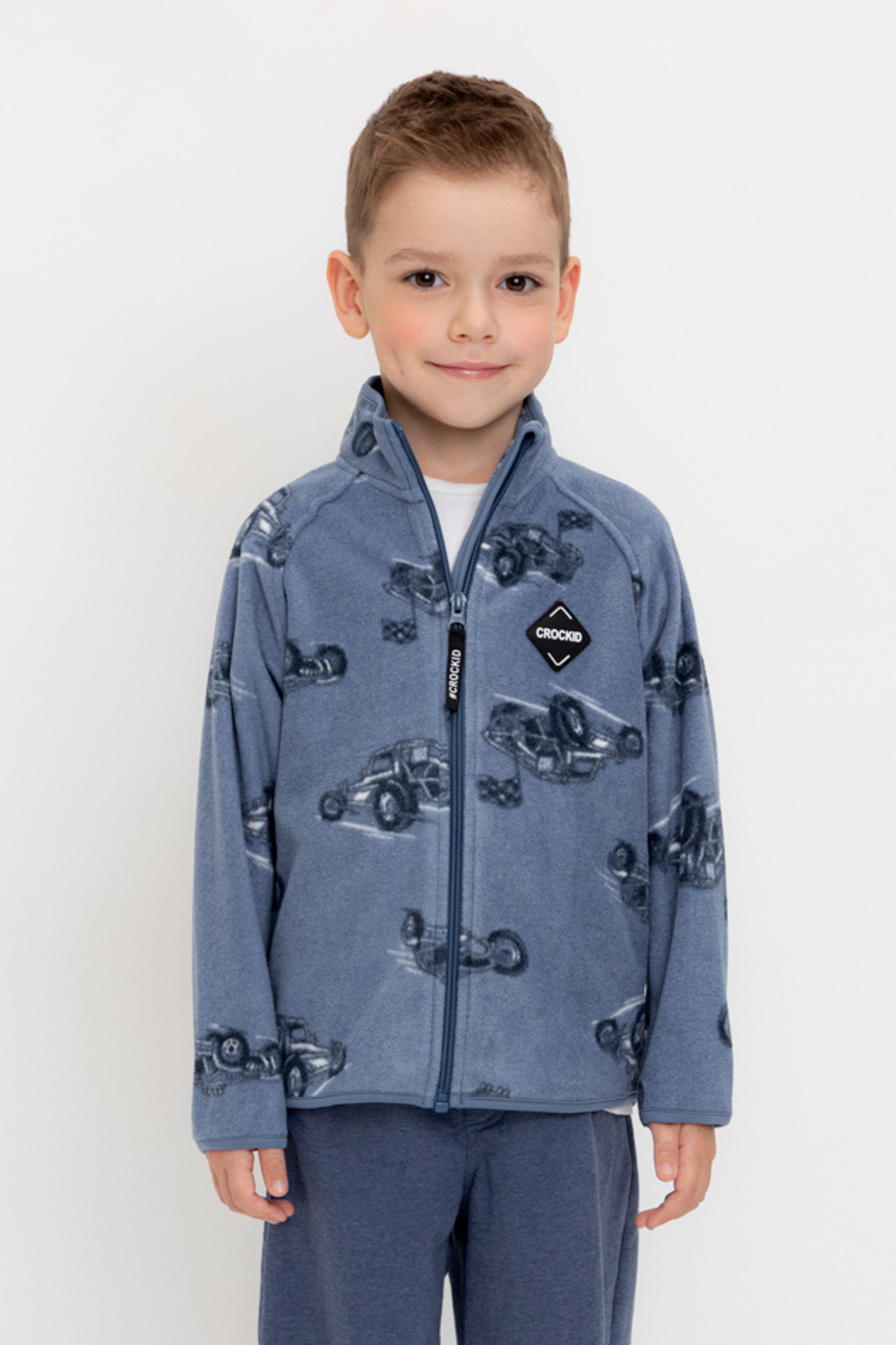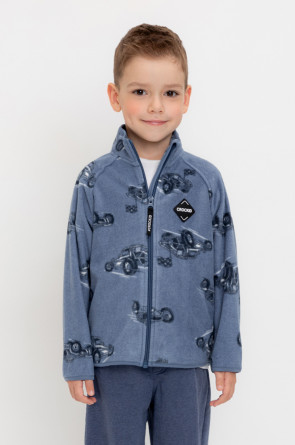 Флисовая куртка для мальчика. У изделия удлинённая спинка, высокий воротник, предусмотрена защита шеи и подбородка. Рукава-реглан и низ изделия обработаны эластичным кантом для лучшего прилегания к телу, по бокам два кармана. Оригинальная набивка выполнена из стойких, гипоаллергенных текстильных красителей. Куртка сохраняет цвет и форму после многократных стирок.
