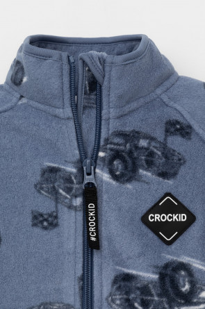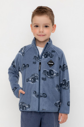 Флисовая куртка для мальчика. У изделия удлинённая спинка, высокий воротник, предусмотрена защита шеи и подбородка. Рукава-реглан и низ изделия обработаны эластичным кантом для лучшего прилегания к телу, по бокам два кармана. Оригинальная набивка выполнена из стойких, гипоаллергенных текстильных красителей. Куртка сохраняет цвет и форму после многократных стирок.
