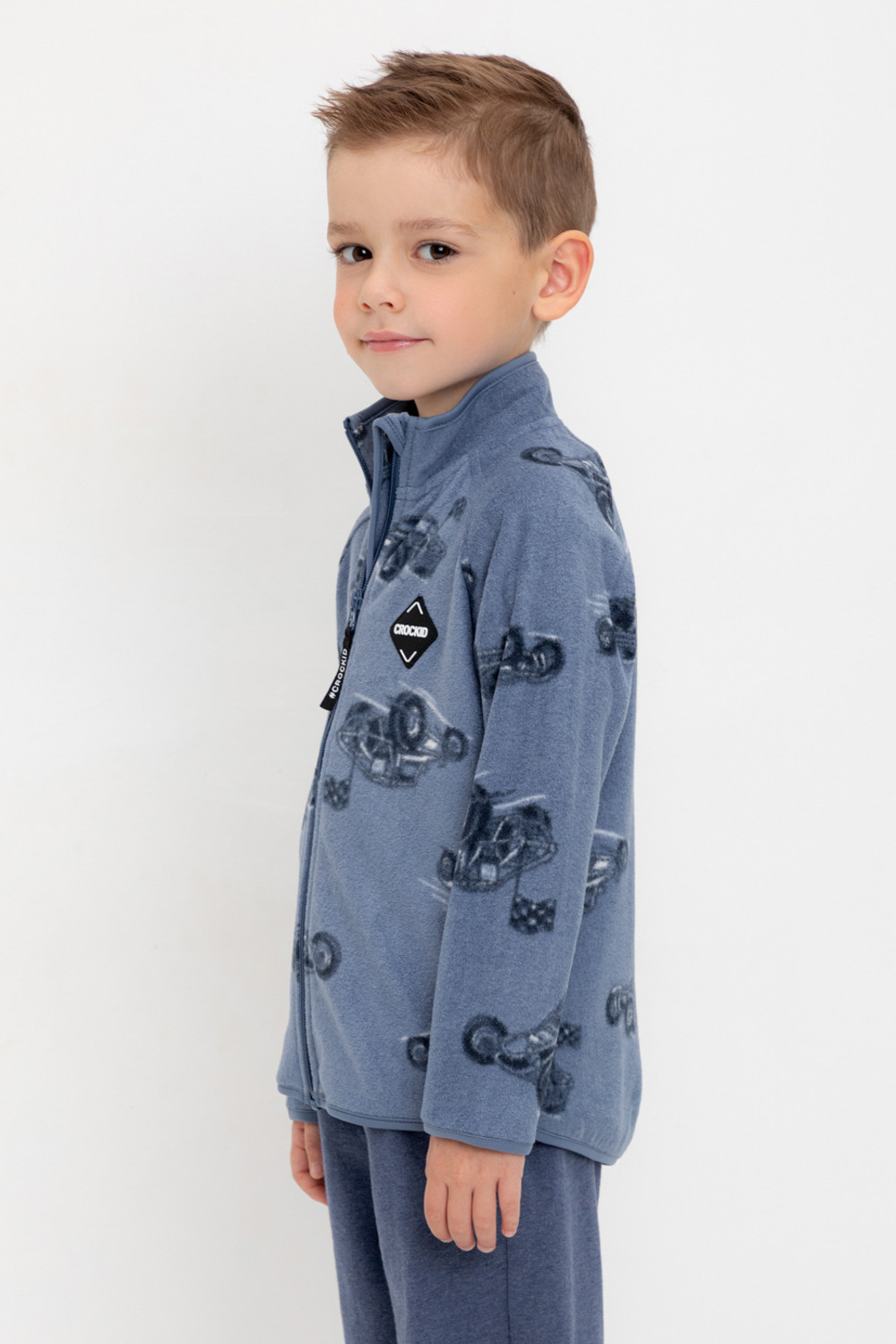 Флисовая куртка для мальчика. У изделия удлинённая спинка, высокий воротник, предусмотрена защита шеи и подбородка. Рукава-реглан и низ изделия обработаны эластичным кантом для лучшего прилегания к телу, по бокам два кармана. Оригинальная набивка выполнена из стойких, гипоаллергенных текстильных красителей. Куртка сохраняет цвет и форму после многократных стирок.