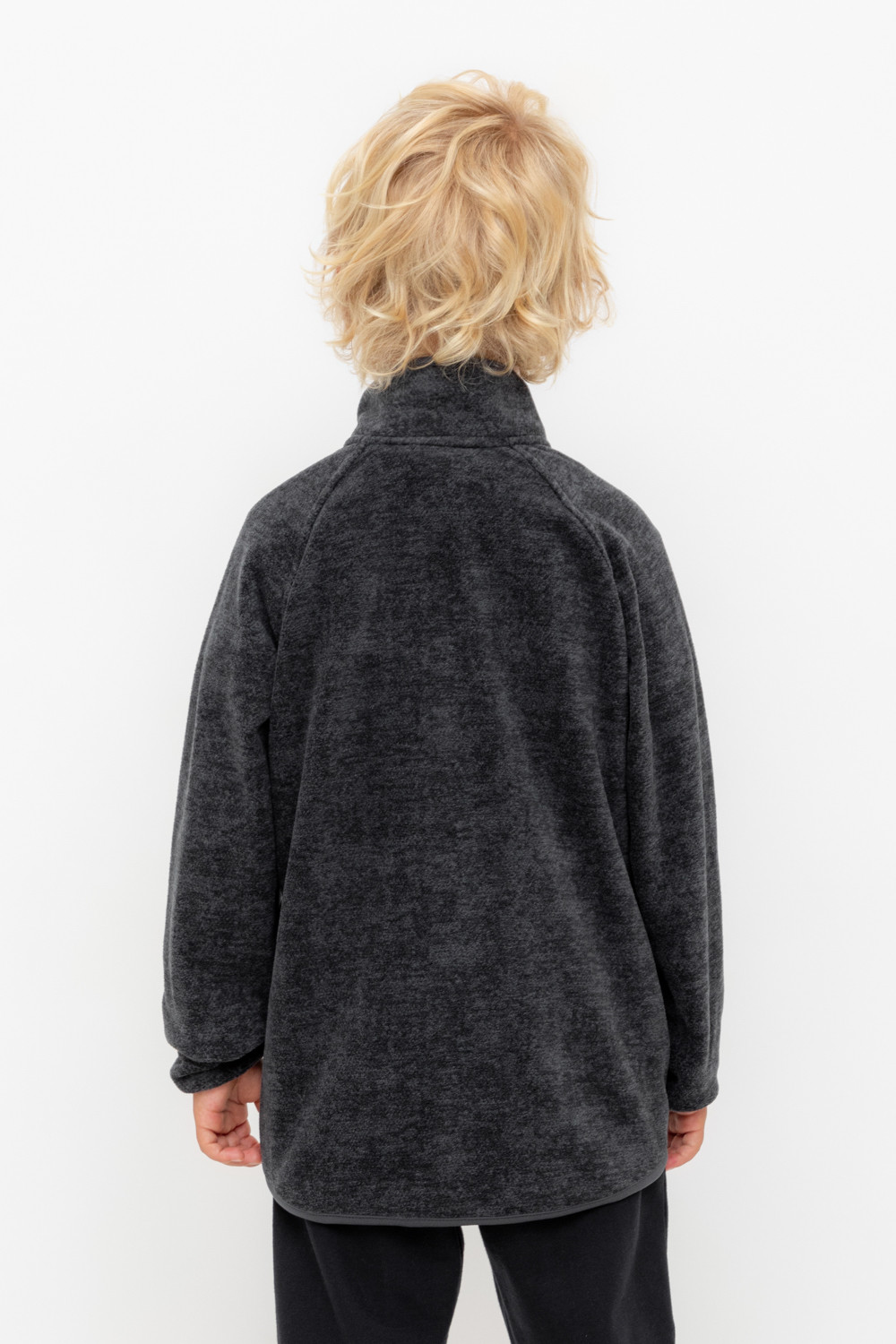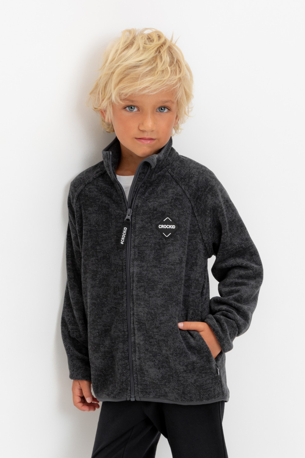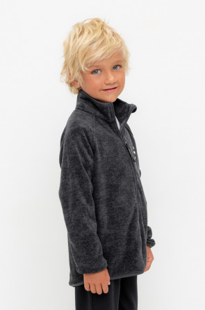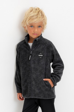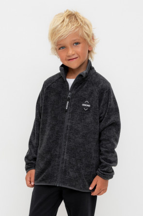 Флисовая куртка для мальчика. У изделия удлинённая спинка, высокий воротник, предусмотрена защита шеи и подбородка. Рукава-реглан и низ изделия обработаны эластичным кантом для лучшего прилегания к телу, по бокам два кармана. Оригинальная набивка выполнена из стойких, гипоаллергенных текстильных красителей. Куртка сохраняет цвет и форму после многократных стирок.