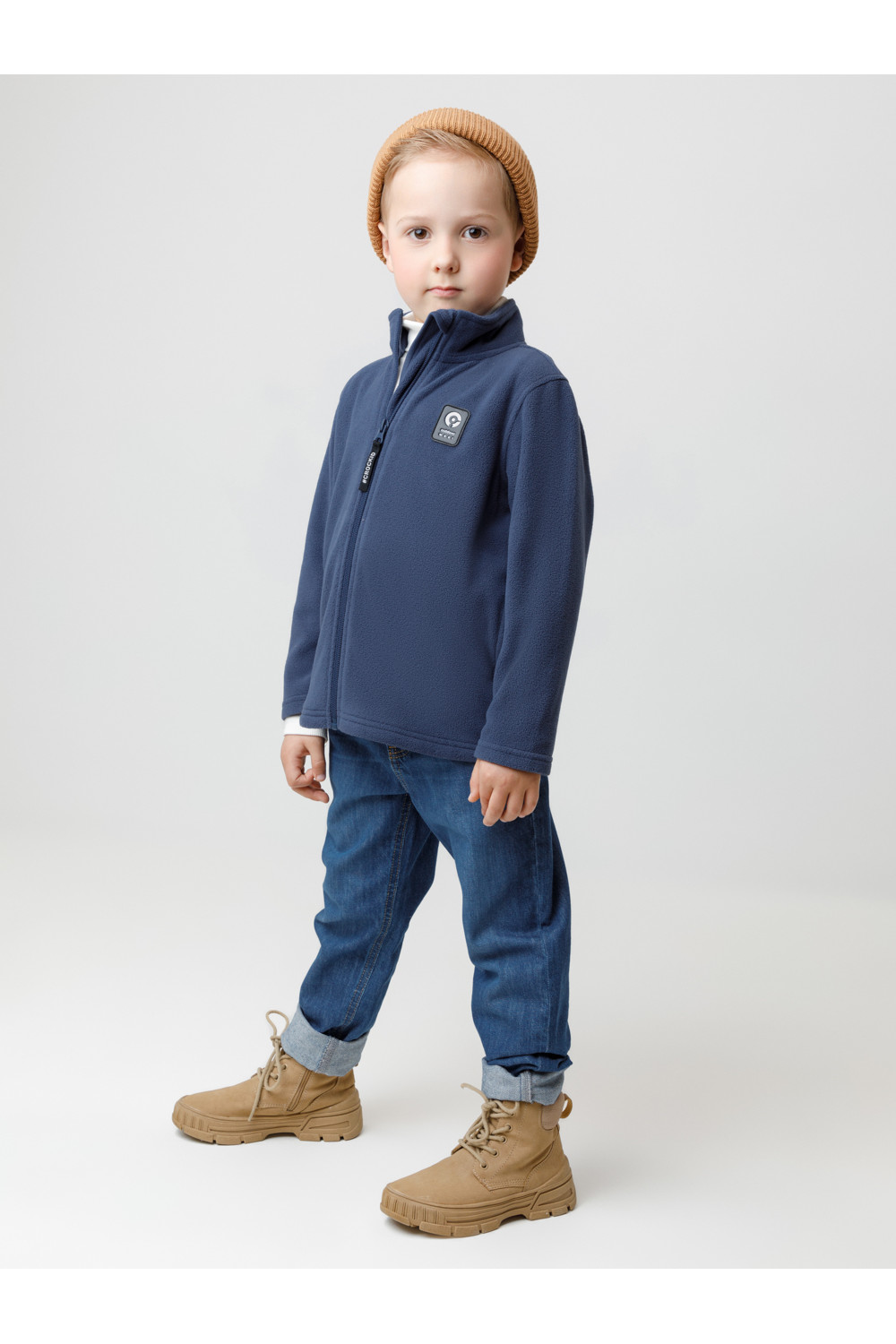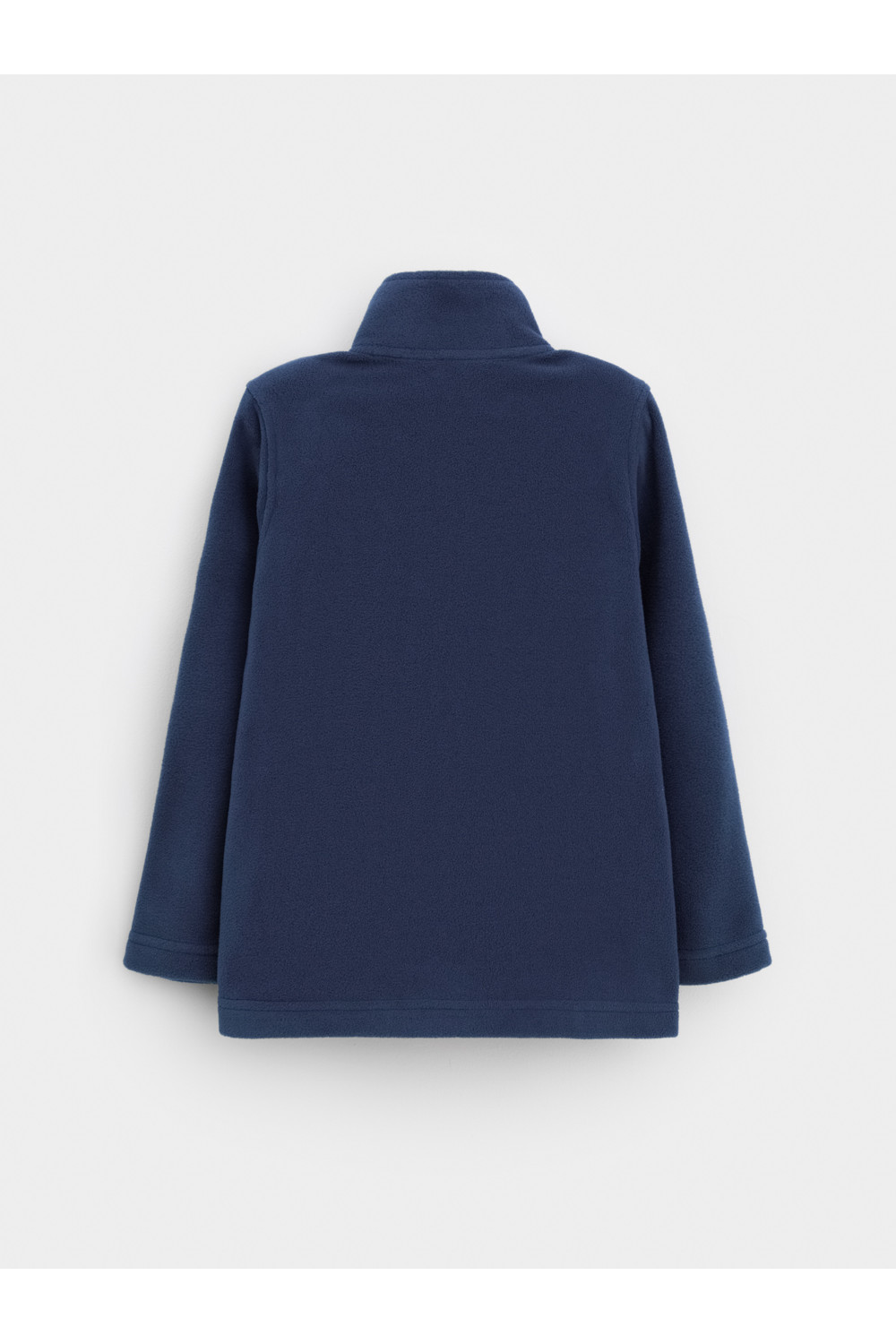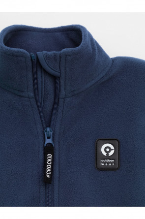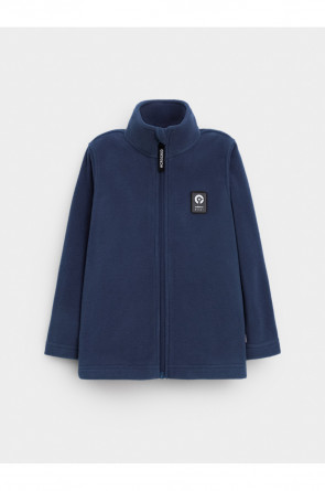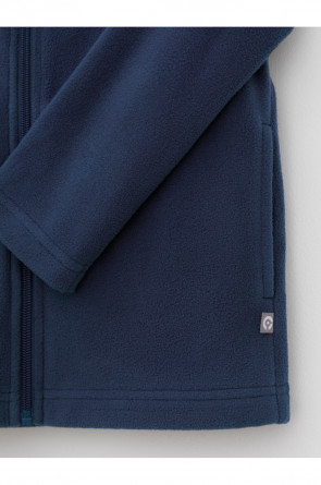 Флисовая куртка для мальчика. У изделия высокий воротник и застёжка на молнию с мягкой защитой шеи и подбородка. По бокам два кармана. Куртка сохраняет цвет и форму после многократных стирок.