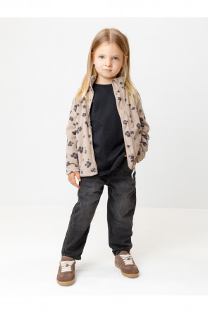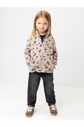 Флисовая куртка для девочки. У изделия высокий воротник и застёжка на молнию с мягкой защитой шеи и подбородка. По бокам два кармана. Оригинальная набивка выполнена из стойких гипоаллергенных текстильных красителей. Куртка сохраняет цвет и форму после многократных стирок.