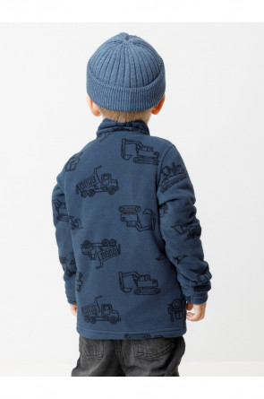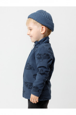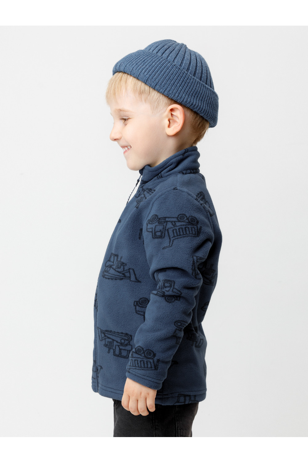 Флисовая куртка для мальчика. У изделия высокий воротник и застёжка на молнию с мягкой защитой шеи и подбородка. По бокам два кармана. Оригинальная набивка выполнена из стойких гипоаллергенных текстильных красителей. Куртка сохраняет цвет и форму после многократных стирок.
