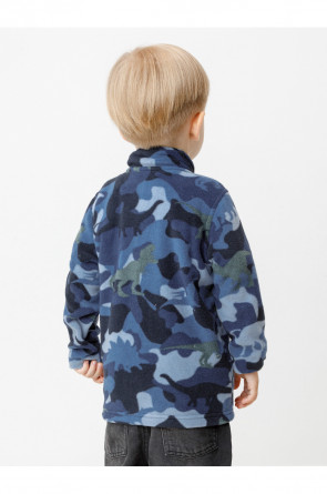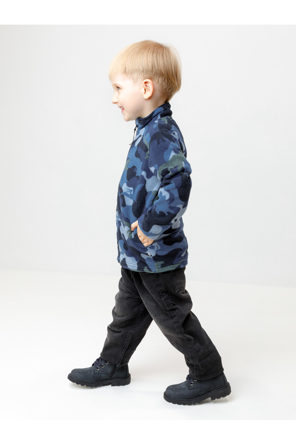 Флисовая куртка для мальчика. У изделия высокий воротник и застёжка на молнию с мягкой защитой шеи и подбородка. По бокам два кармана. Оригинальная набивка выполнена из стойких гипоаллергенных текстильных красителей. Куртка сохраняет цвет и форму после многократных стирок.