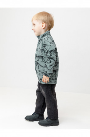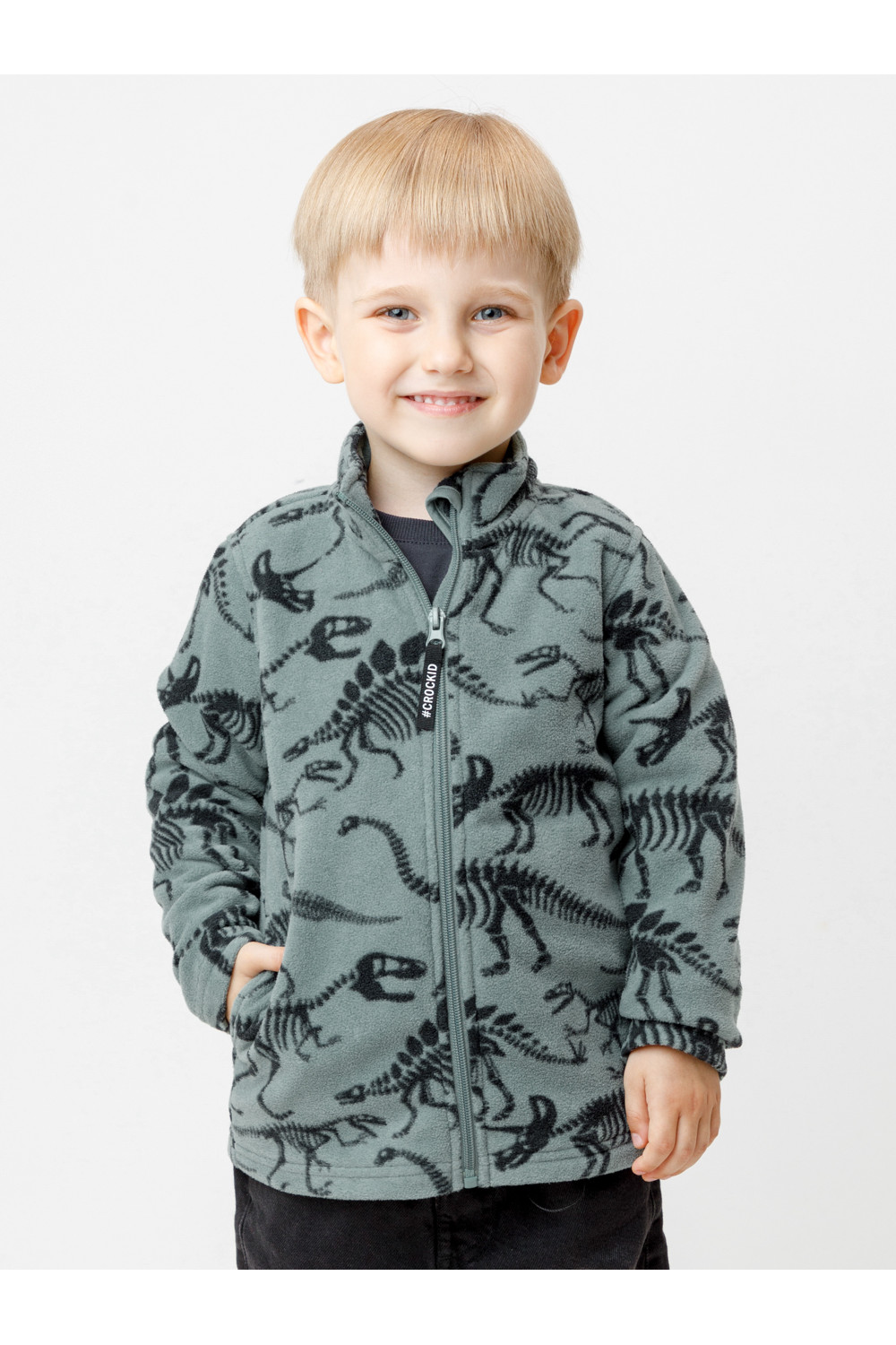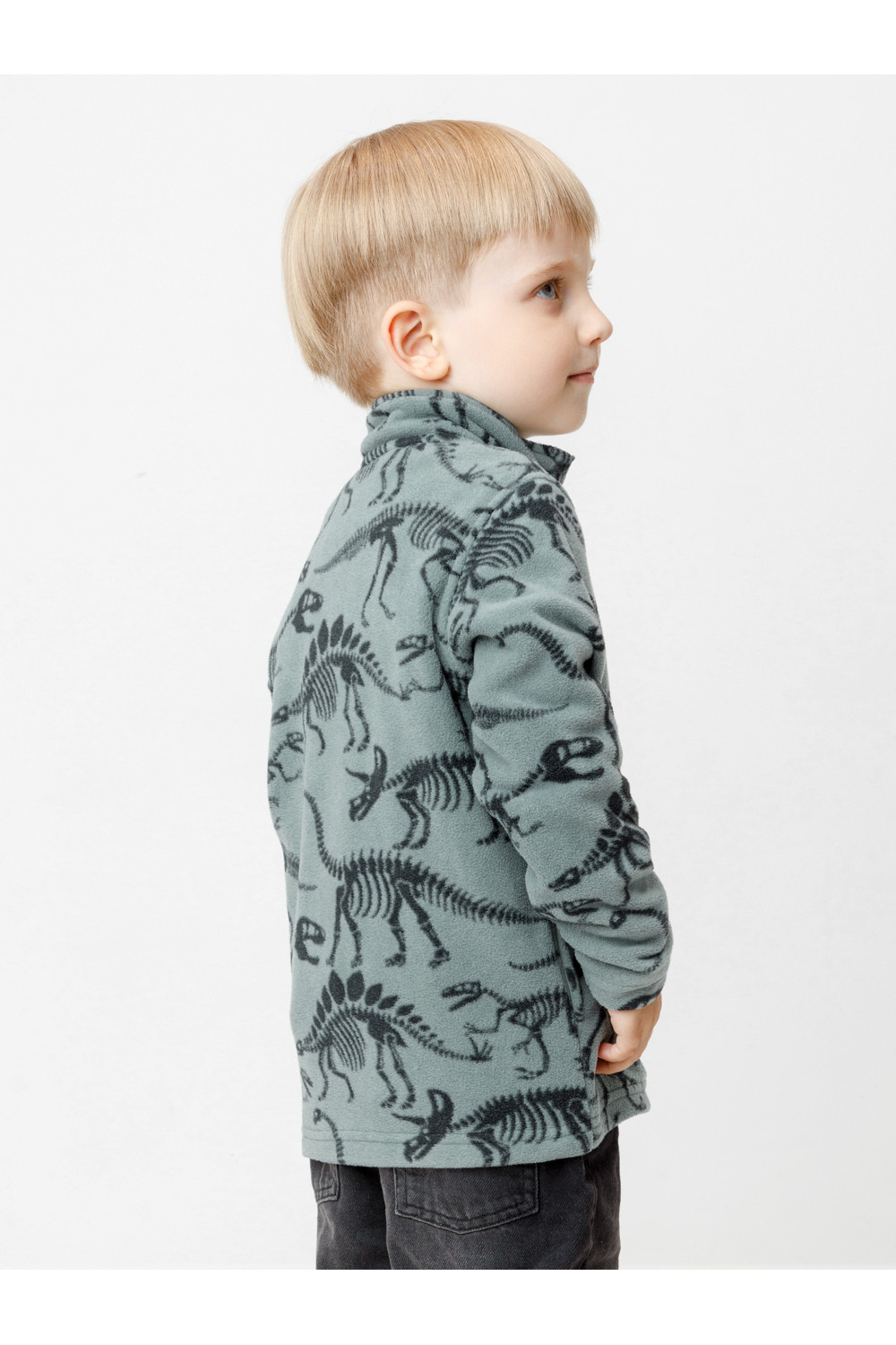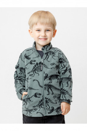 Флисовая куртка для мальчика. У изделия высокий воротник и застёжка на молнию с мягкой защитой шеи и подбородка. По бокам два кармана. Оригинальная набивка выполнена из стойких гипоаллергенных текстильных красителей. Куртка сохраняет цвет и форму после многократных стирок.