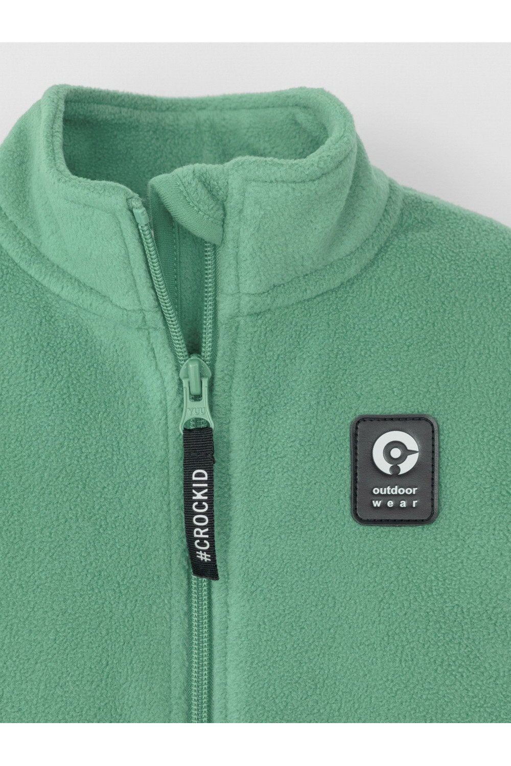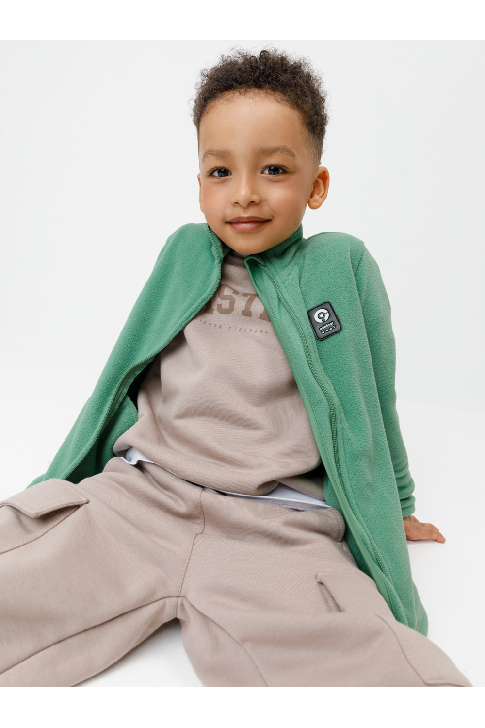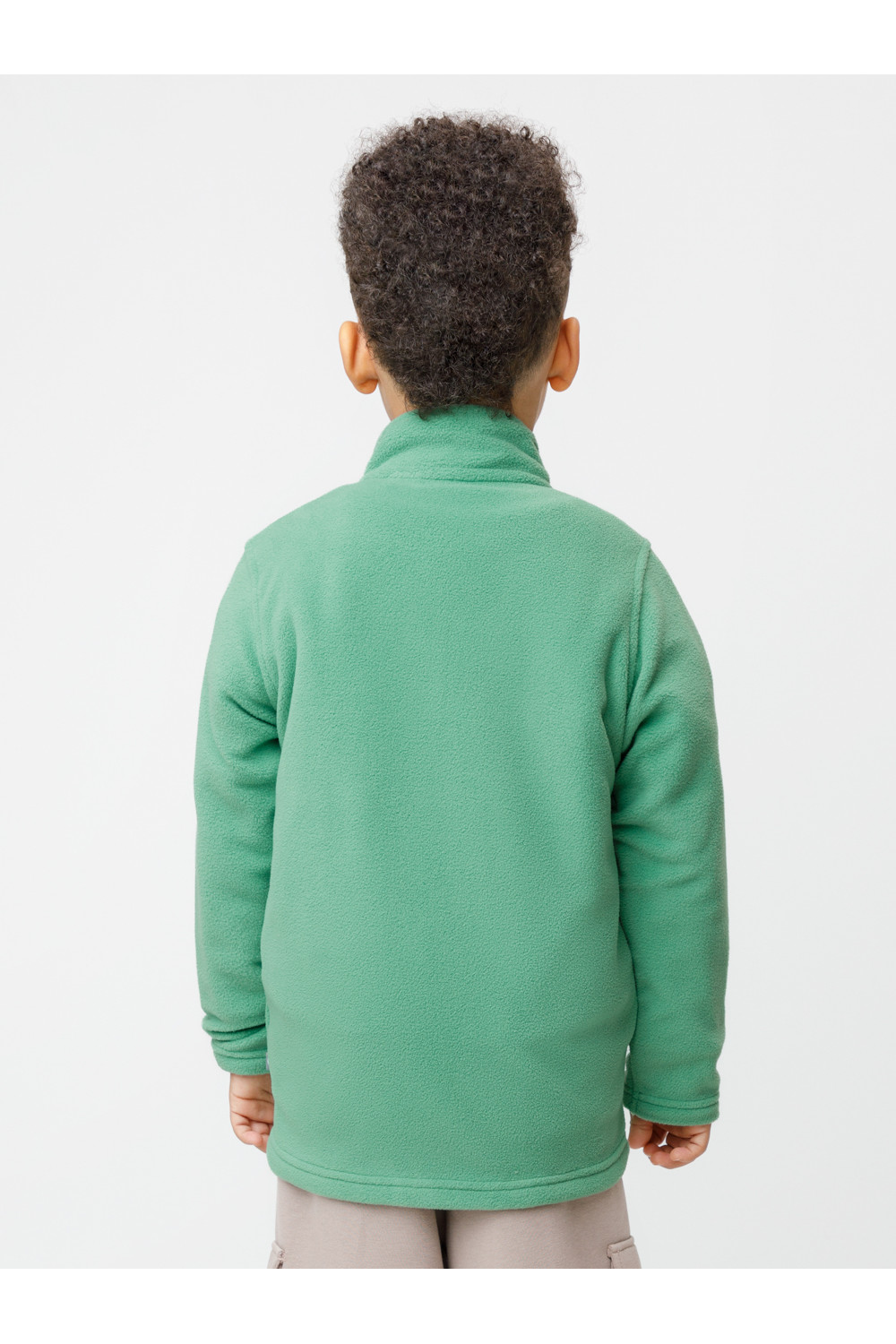 Флисовая куртка для мальчика. У изделия высокий воротник и застёжка на молнию с мягкой защитой шеи и подбородка. По бокам два кармана. Спереди украшена фирменной нашивкой. Куртка сохраняет цвет и форму после многократных стирок.