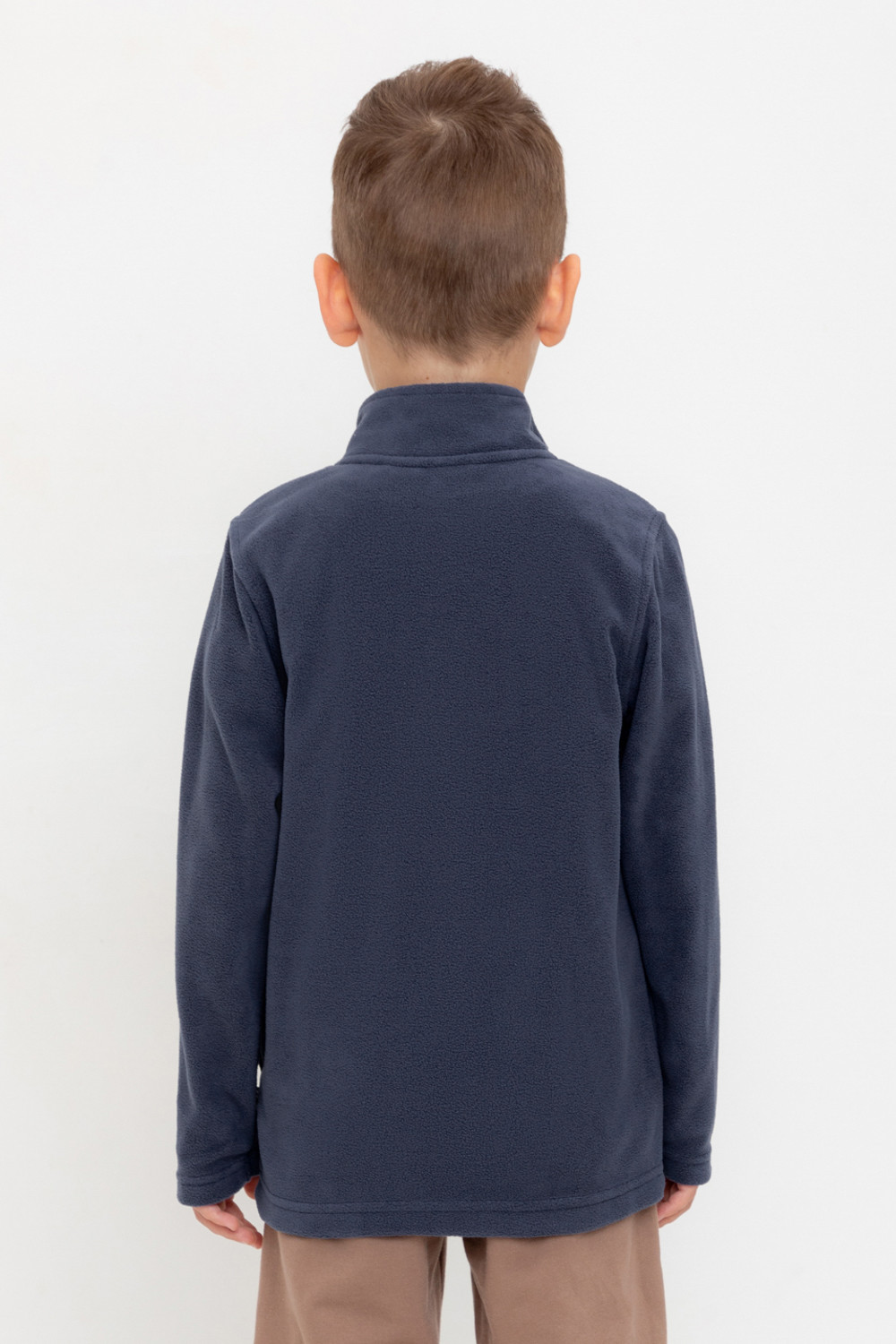 Флисовая куртка для мальчика. У изделия высокий воротник, предусмотрена защита шеи и подбородка, по бокам карманы. Куртка сохраняет цвет и форму после многократных стирок.