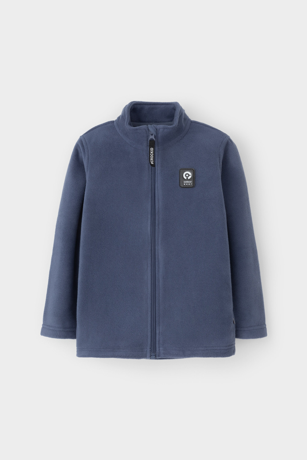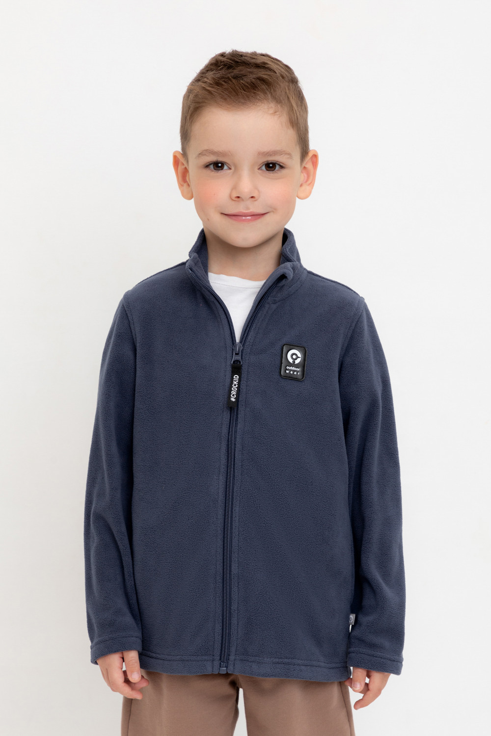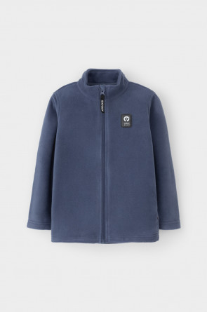 Флисовая куртка для мальчика. У изделия высокий воротник, предусмотрена защита шеи и подбородка, по бокам карманы. Куртка сохраняет цвет и форму после многократных стирок.