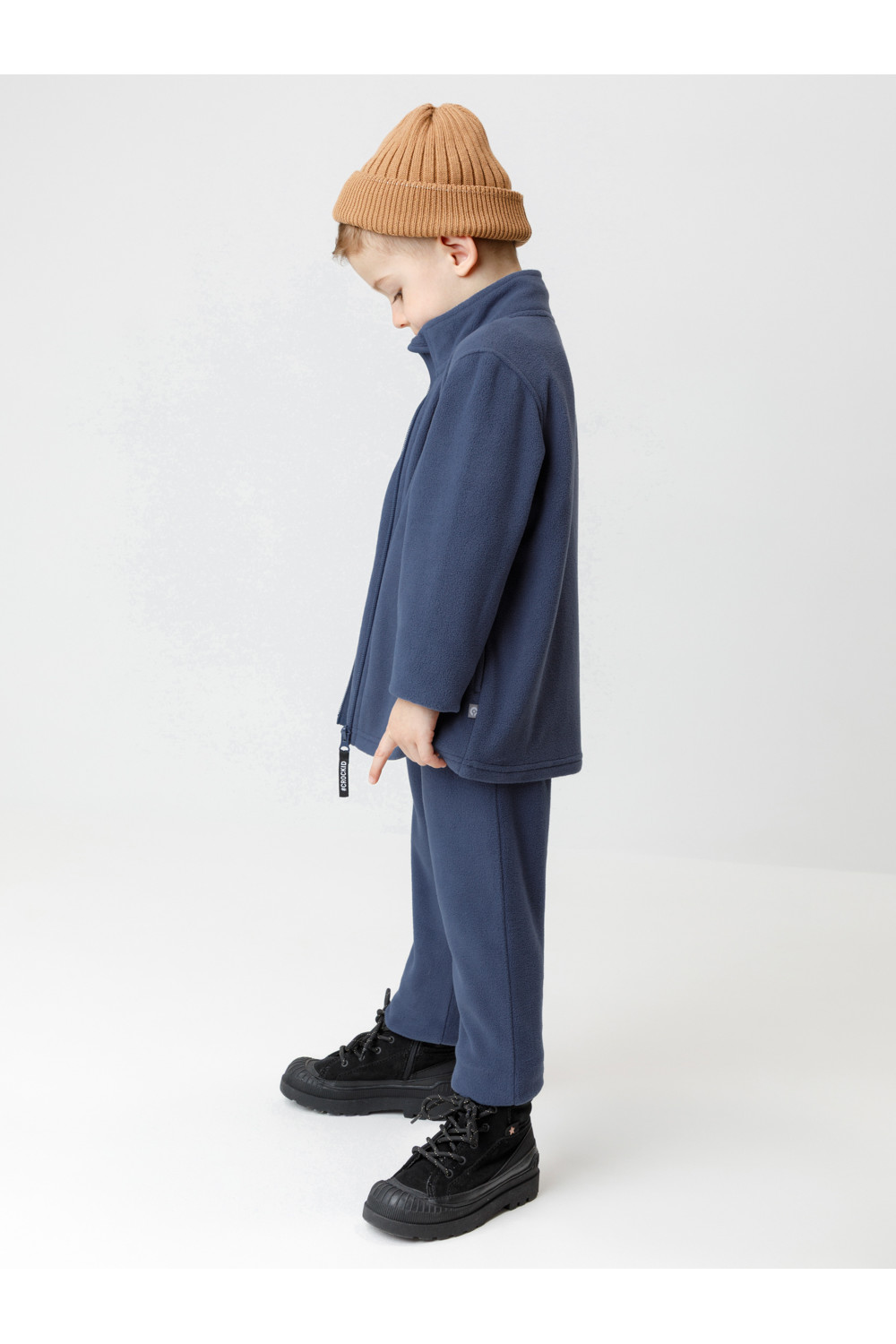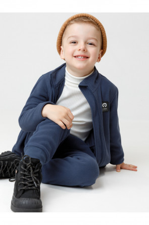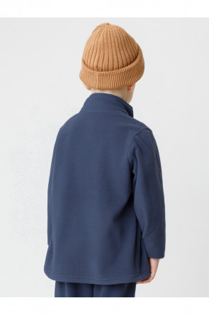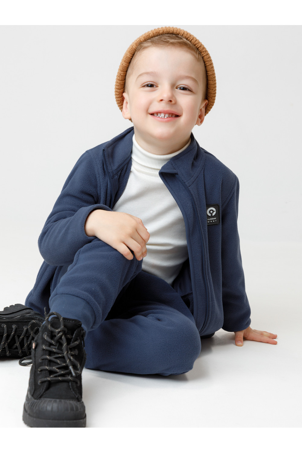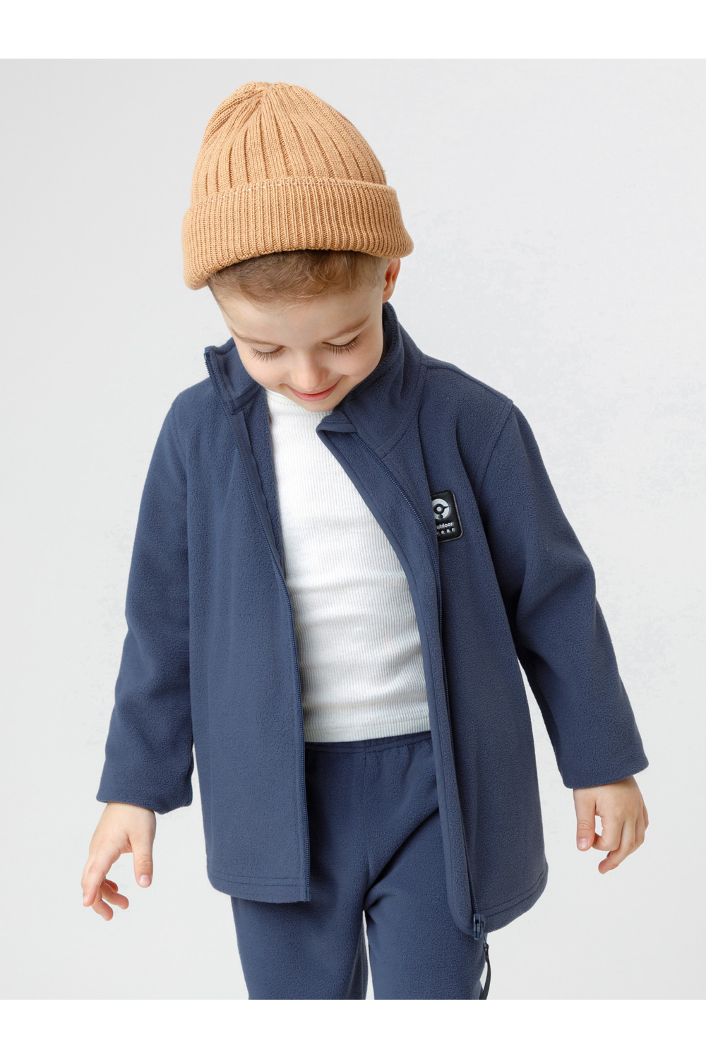 Флисовая куртка для мальчика. У изделия высокий воротник и застёжка на молнию с мягкой защитой шеи и подбородка. По бокам два кармана. Куртка сохраняет цвет и форму после многократных стирок.