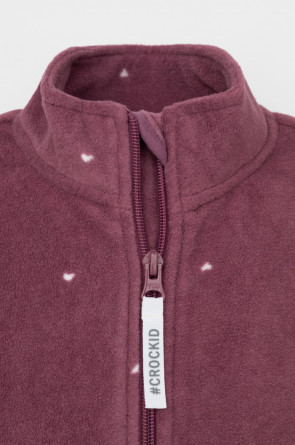 Флисовая куртка для девочки. У изделия высокий воротник, предусмотрена защита шеи и подбородка, по бокам карманы. Оригинальная набивка выполнена из стойких, гипоаллергенных текстильных красителей. Куртка сохраняет цвет и форму после многократных стирок.