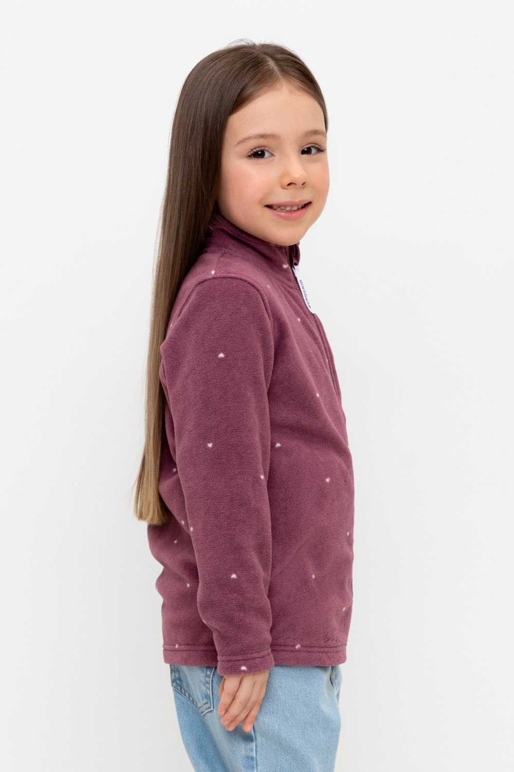 Флисовая куртка для девочки. У изделия высокий воротник, предусмотрена защита шеи и подбородка, по бокам карманы. Оригинальная набивка выполнена из стойких, гипоаллергенных текстильных красителей. Куртка сохраняет цвет и форму после многократных стирок.