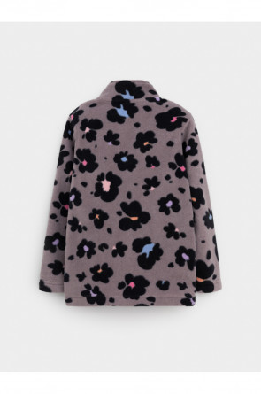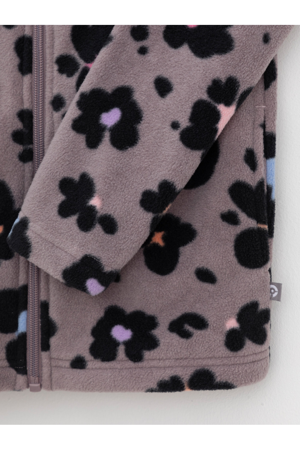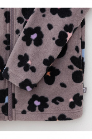 Флисовая куртка для девочки. У изделия высокий воротник и застёжка на молнию с мягкой защитой шеи и подбородка. По бокам два кармана. Оригинальная набивка выполнена из стойких гипоаллергенных текстильных красителей. Куртка сохраняет цвет и форму после многократных стирок.