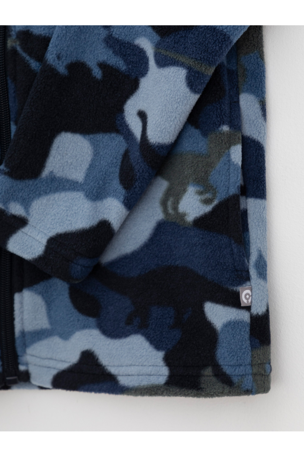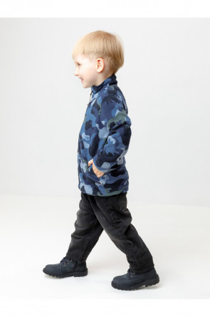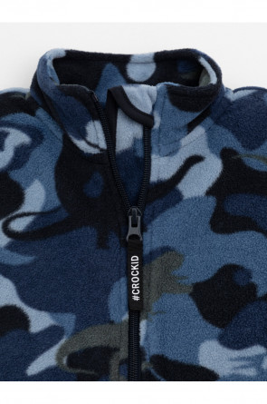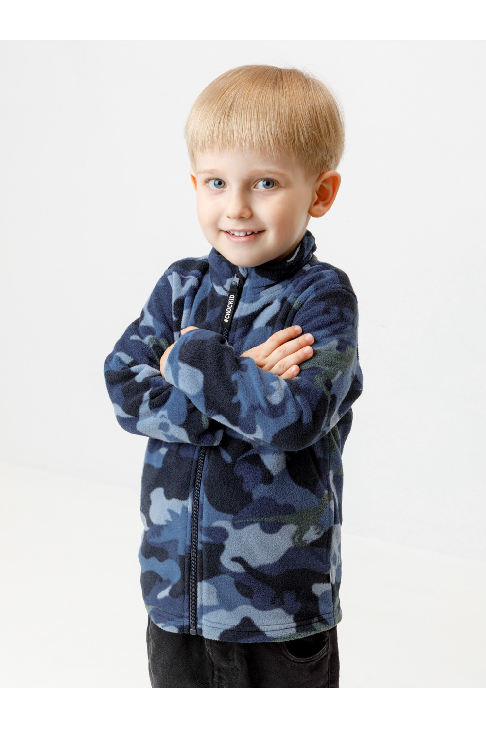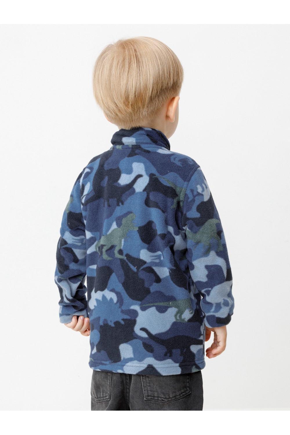 Флисовая куртка для мальчика. У изделия высокий воротник и застёжка на молнию с мягкой защитой шеи и подбородка. По бокам два кармана. Оригинальная набивка выполнена из стойких гипоаллергенных текстильных красителей. Куртка сохраняет цвет и форму после многократных стирок.
