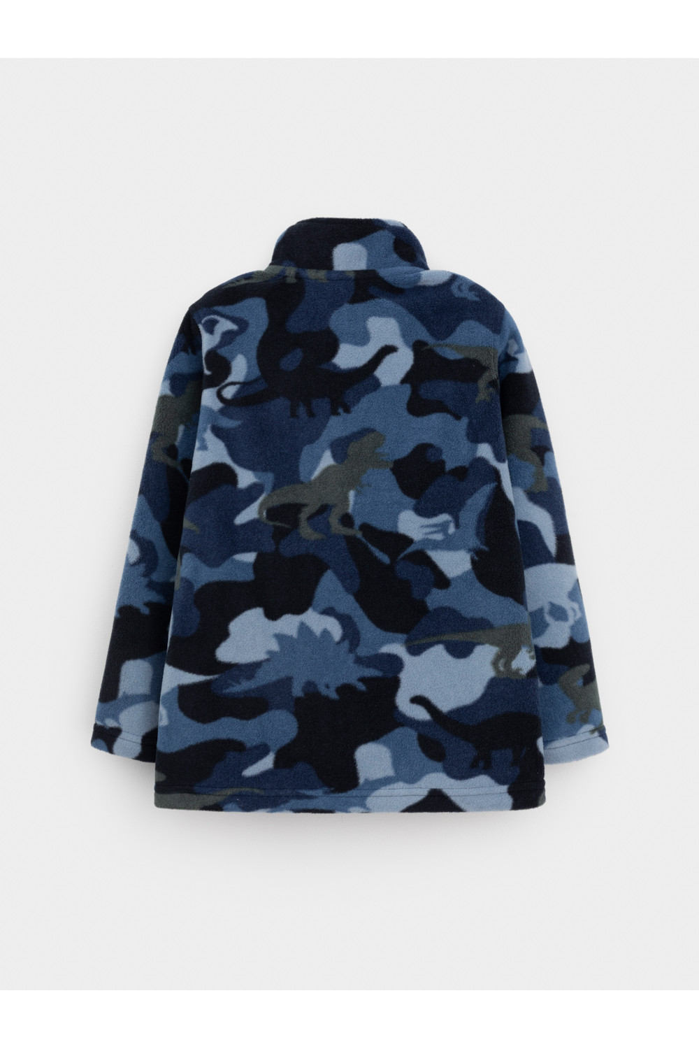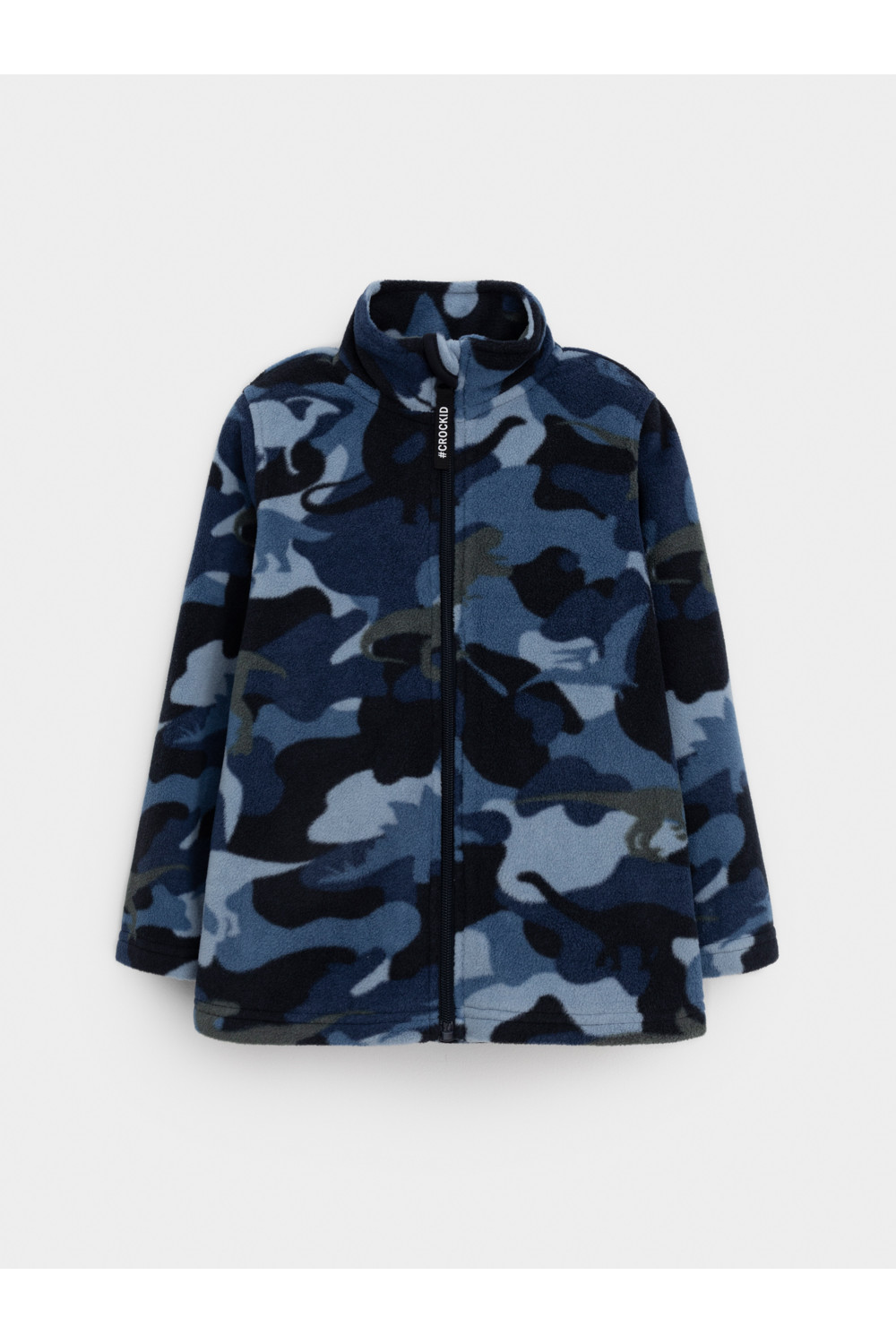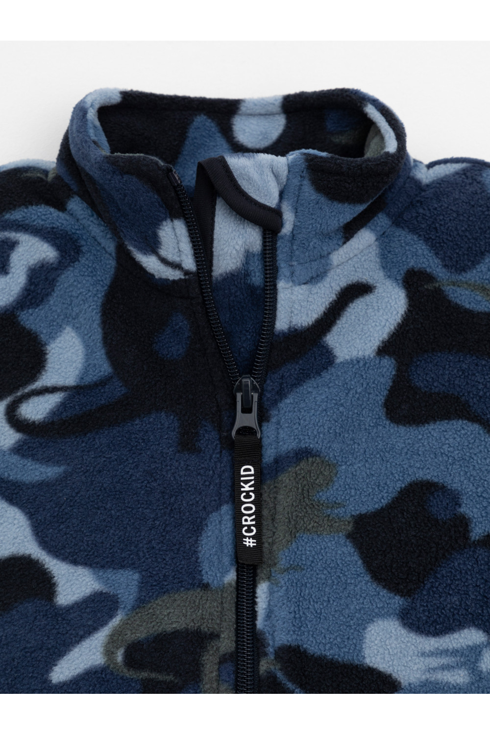 Флисовая куртка для мальчика. У изделия высокий воротник и застёжка на молнию с мягкой защитой шеи и подбородка. По бокам два кармана. Оригинальная набивка выполнена из стойких гипоаллергенных текстильных красителей. Куртка сохраняет цвет и форму после многократных стирок.