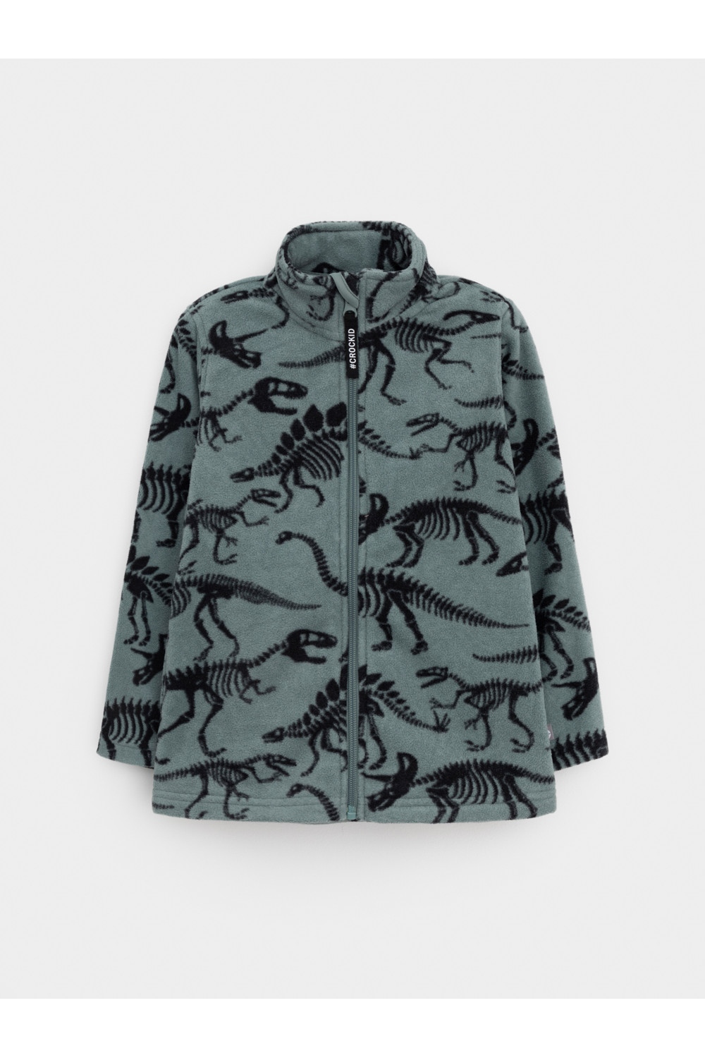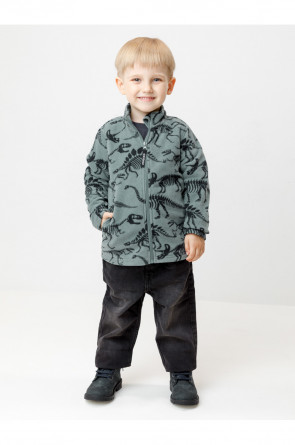 Флисовая куртка для мальчика. У изделия высокий воротник и застёжка на молнию с мягкой защитой шеи и подбородка. По бокам два кармана. Оригинальная набивка выполнена из стойких гипоаллергенных текстильных красителей. Куртка сохраняет цвет и форму после многократных стирок.