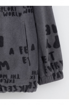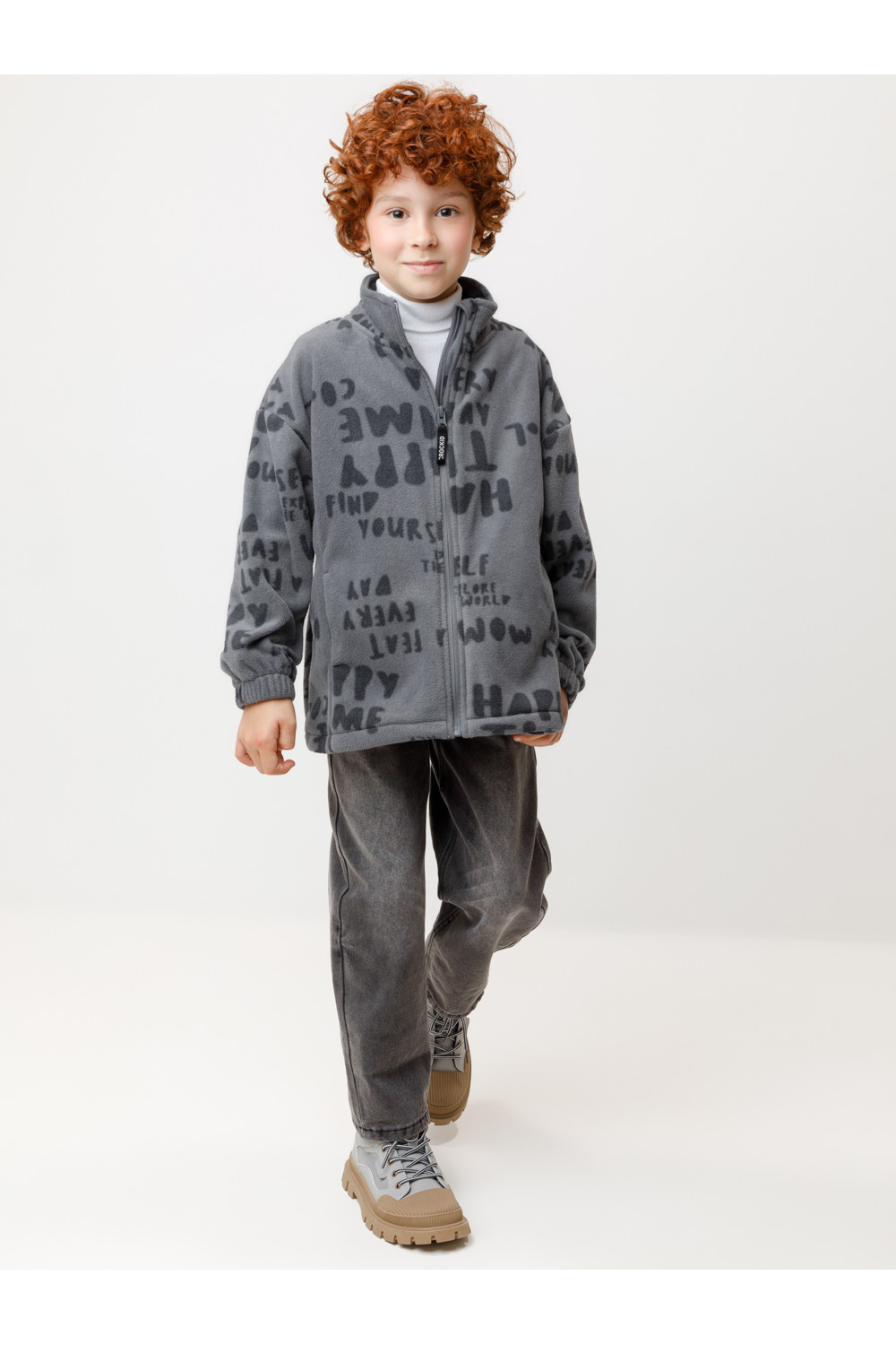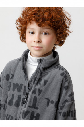 Флисовая куртка для мальчика. У изделия высокий воротник и застёжка на молнию с мягкой защитой шеи и подбородка. По бокам два кармана. Рукава собраны на резинку. Низ изделия регулируется по ширине с помощью эластичной утяжки со стопперами. Куртка сохраняет цвет и форму после многократных стирок.