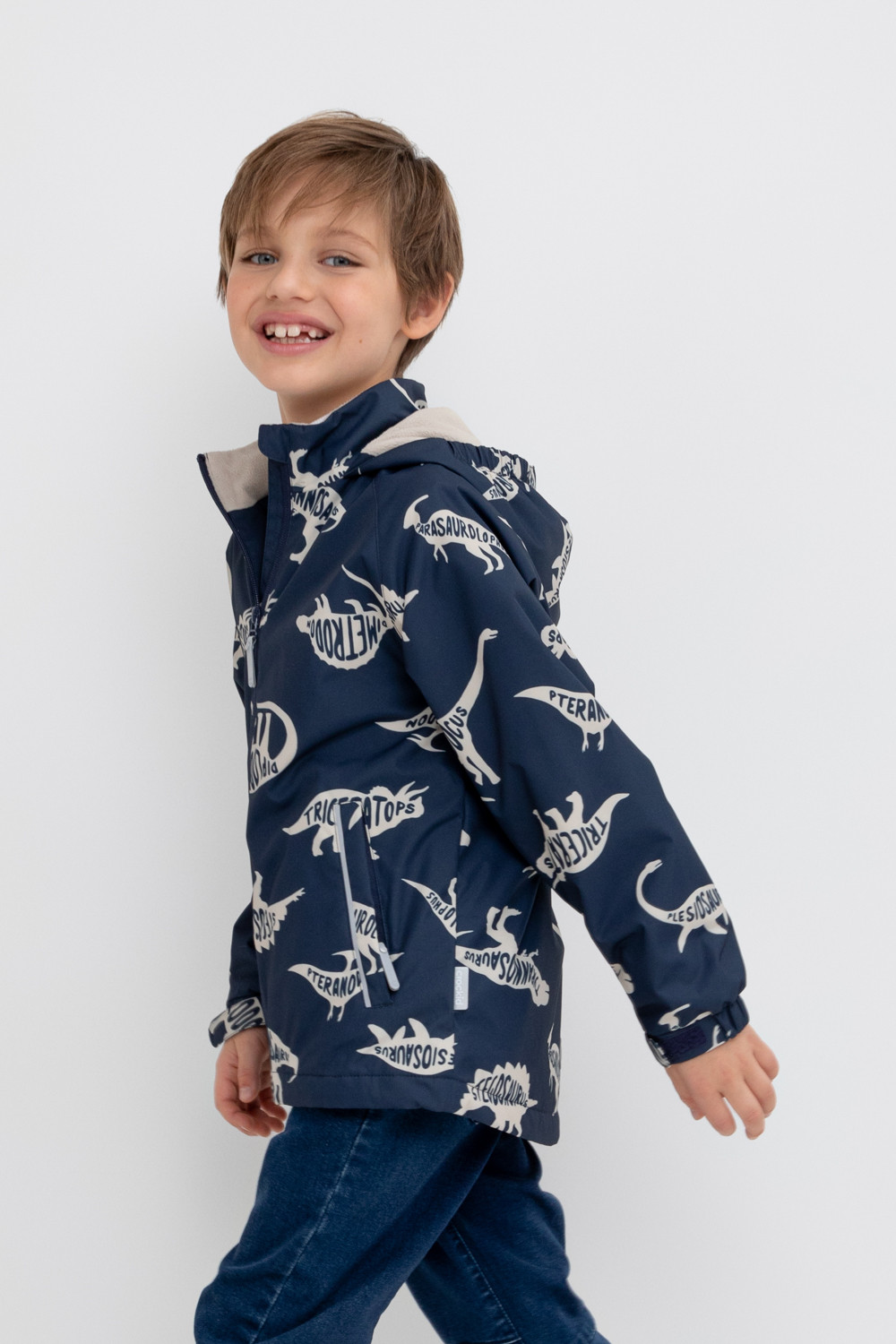 Ветровка для мальчика из мембранной ткани с дополнительной тефлоновой обработкой. Данный вид обработки предохраняет изделие от загрязнения и лучше отводит влагу. Мягкий подклад выполнен из 100% полиэстра - флиса. Несъемный капюшон и низ рукавов имеют эластичную резинку для лучшего прилегания. У изделия предусмотрена защита подбородка. Боковые карманы на молнии. Во всех изделиях верхнего ассортимента для безопасности ребенка предусмотрены светоотражающие элементы