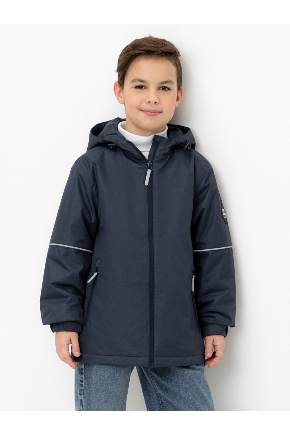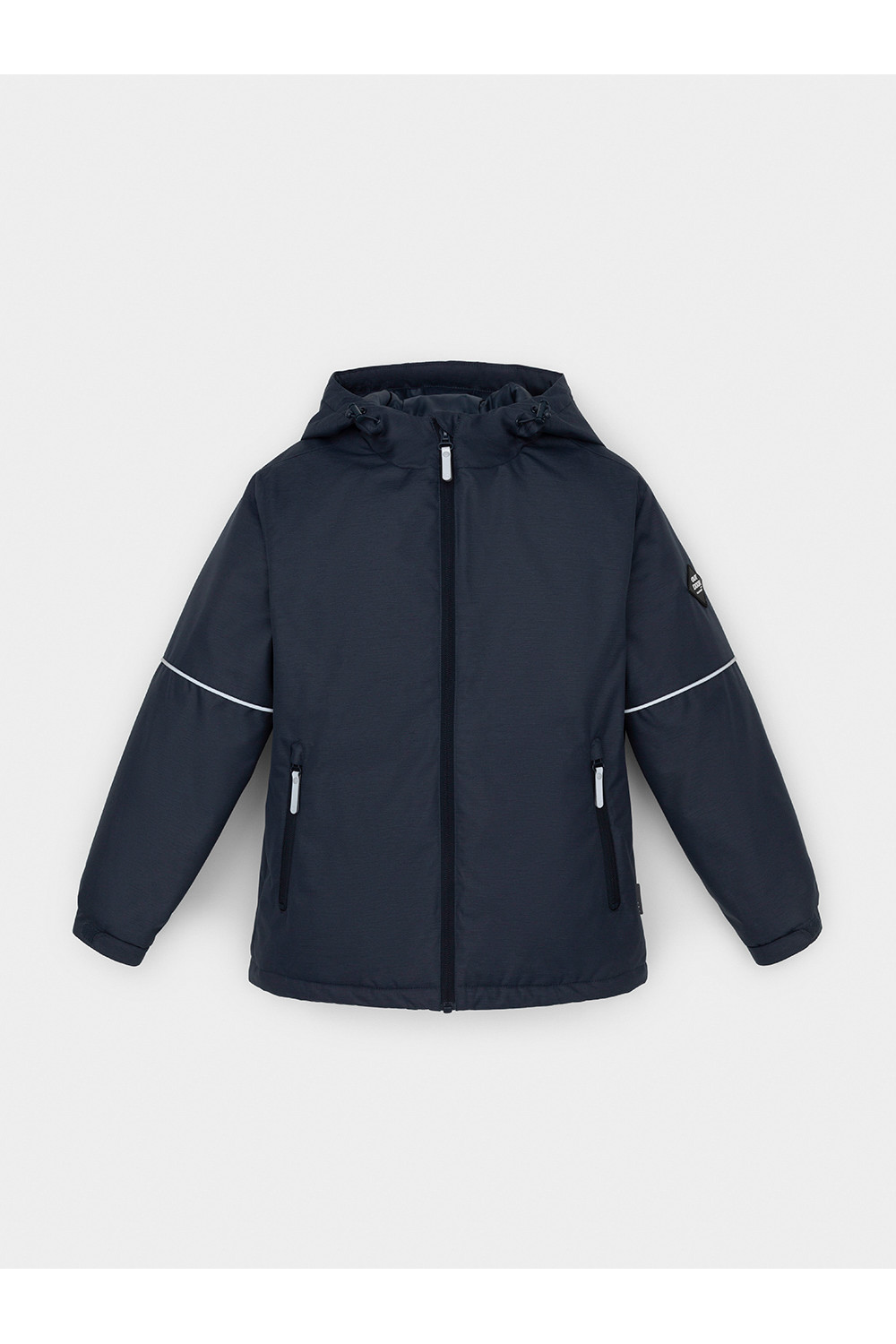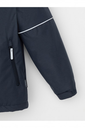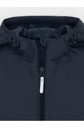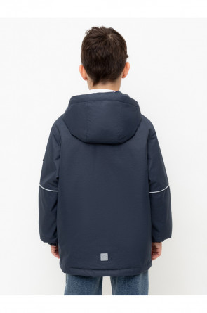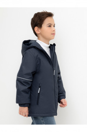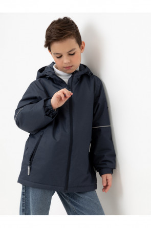Демисезонная куртка для мальчика с утеплителем SEE®: 120 г/м2. Выполнена из мембранной ткани с дополнительной тефлоновой обработкой. Данный вид обработки предохраняет изделие от загрязнения и лучше отводит влагу. Подклад из 100% полиэстера. У изделия предусмотрена защита подбородка. Несъемный капюшон имеет эластичную утяжку со стопперами. Эластичные манжеты регулируются по ширине при помощи липучек. Низ изделия регулируется эластичной утяжкой со стопперам. Во всех изделиях верхнего ассортимента для безопасности ребенка предусмотрены светоотражающие элементы.