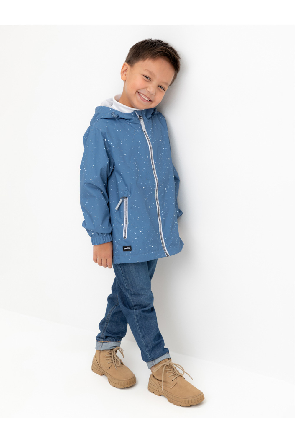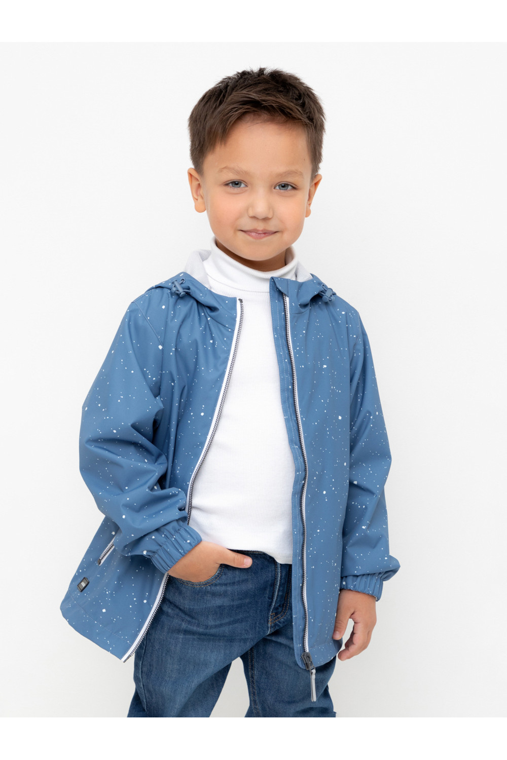 Ветровка для мальчика из мембранной ткани с дополнительной тефлоновой обработкой. Верхняя мембранная ткань 1000/1000 с тефлоновым покрытием отталкивает воду и грязь и обладает «дышащими» свойствами. Подкладка выполнена из сетки, 100% полиэстер. У изделия предусмотрена защита подбородка. Несъемный капюшон регулируется с помощью эластичного шнура со стопперами. Низ рукавов имеет эластичную резинку для лучшего прилегания. Во всех изделиях верхнего ассортимента для безопасности ребенка предусмотрены светоотражающие элементы.